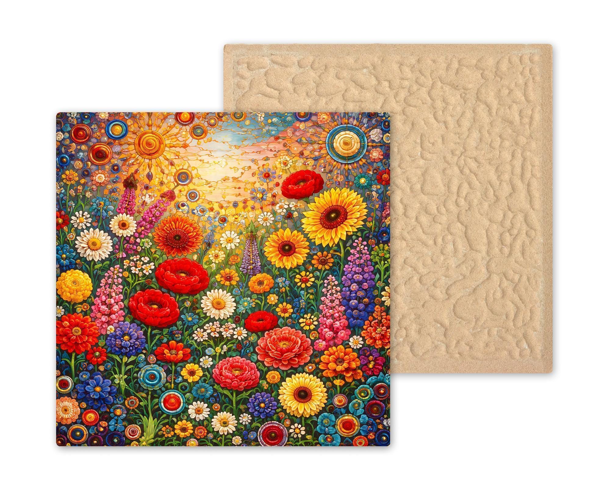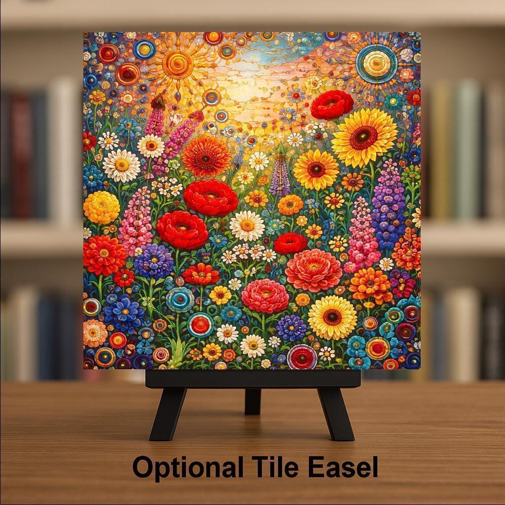 This artwork celebrates the abundance and optimism found in a meadow at peak bloom. Inspired by wildflowers rather than a single species, the design leans into movement, color layering, and stained glass–style geometry to create a piece that feels dynamic and expressive.