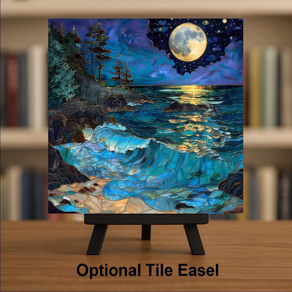 Optional tile wall hanger, easel tile stand, cork backing, and premium framed display options are available.
