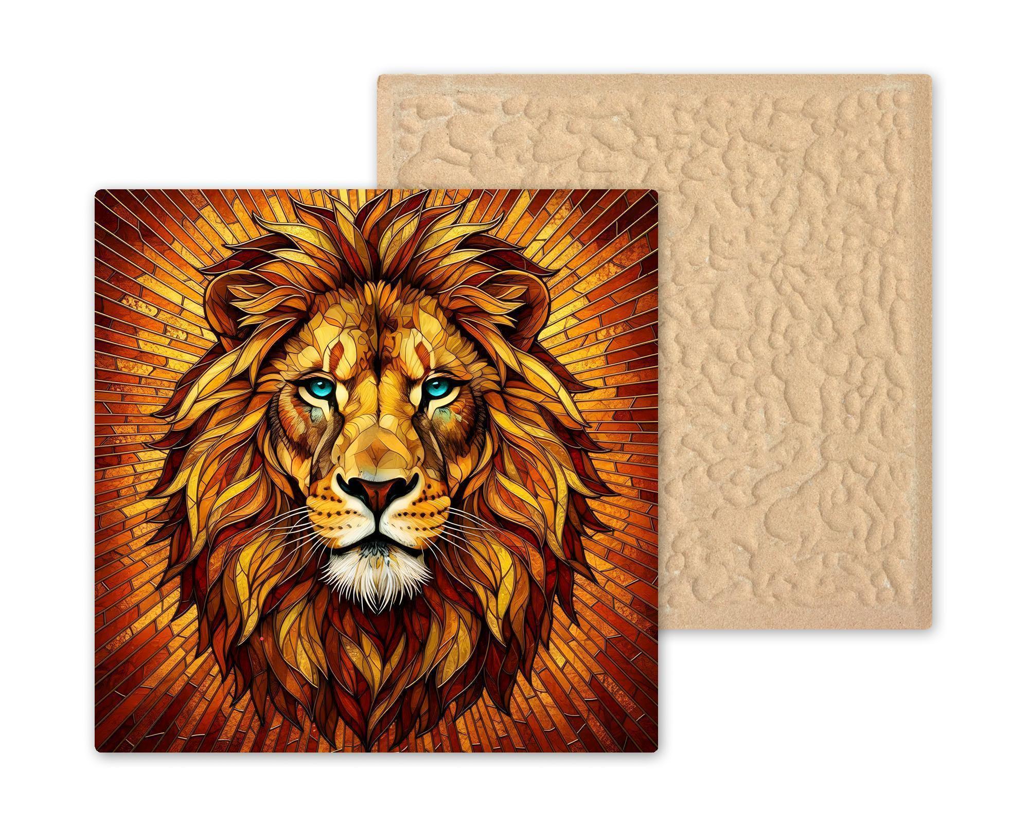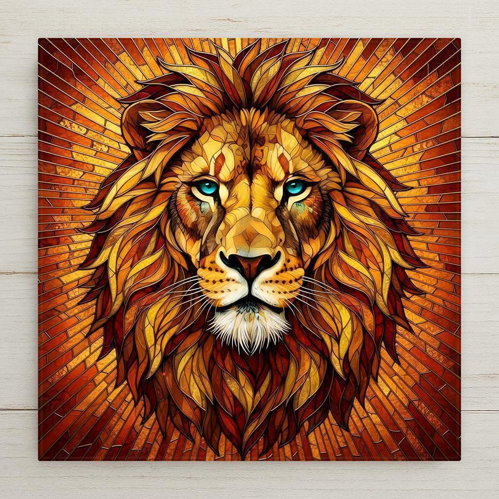 The lion has always symbolized courage, leadership, and presence. This lion wall art ceramic tile captures that commanding energy in a luminous stained glass inspired design.