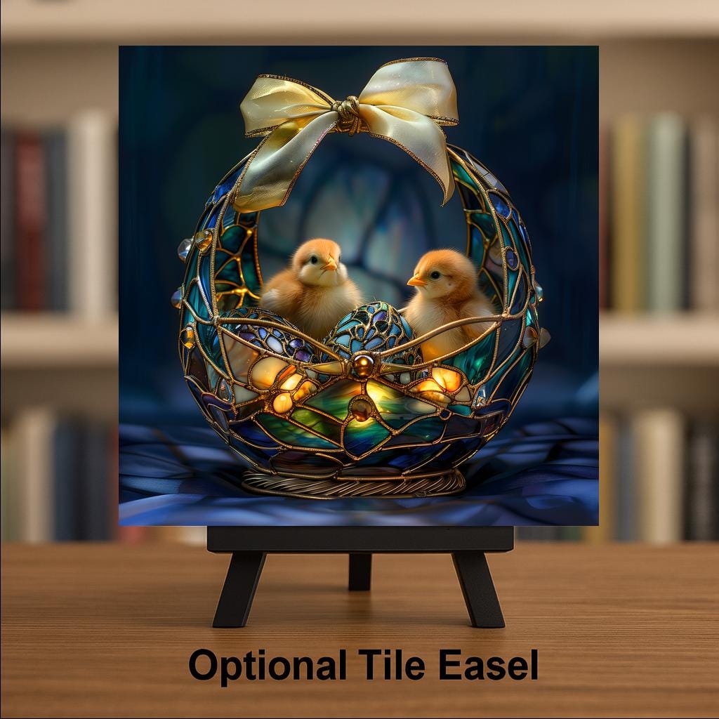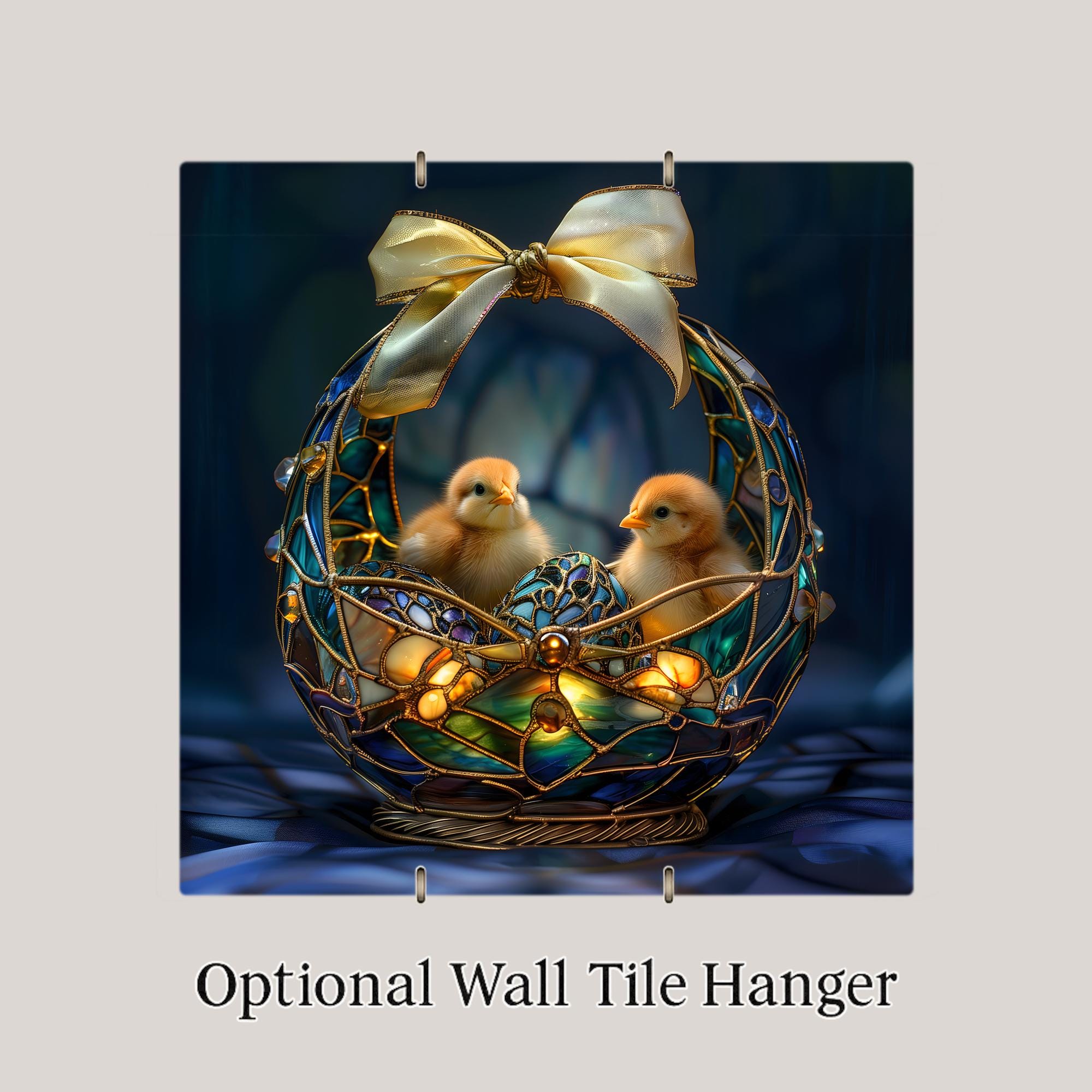 This design balances softness and sophistication. The gentle presence of the chicks paired with the glowing jewel glass creates a composition that feels warm, symbolic, and intentional.