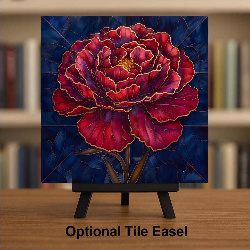 Carnations symbolize love, admiration, and devotion. This design captures that symbolism through a bold single bloom, centered and illuminated against a rich jewel-tone backdrop.