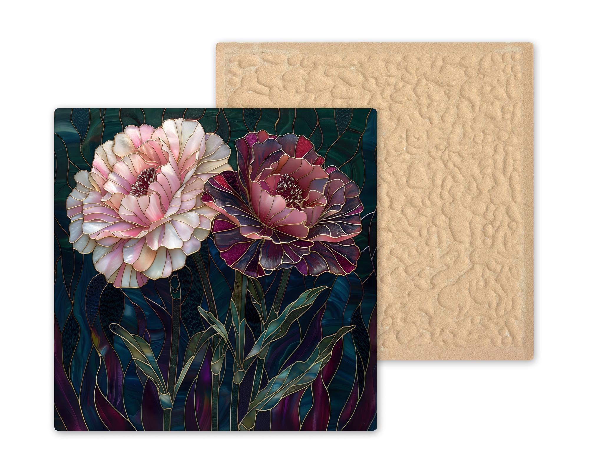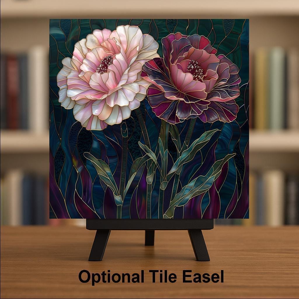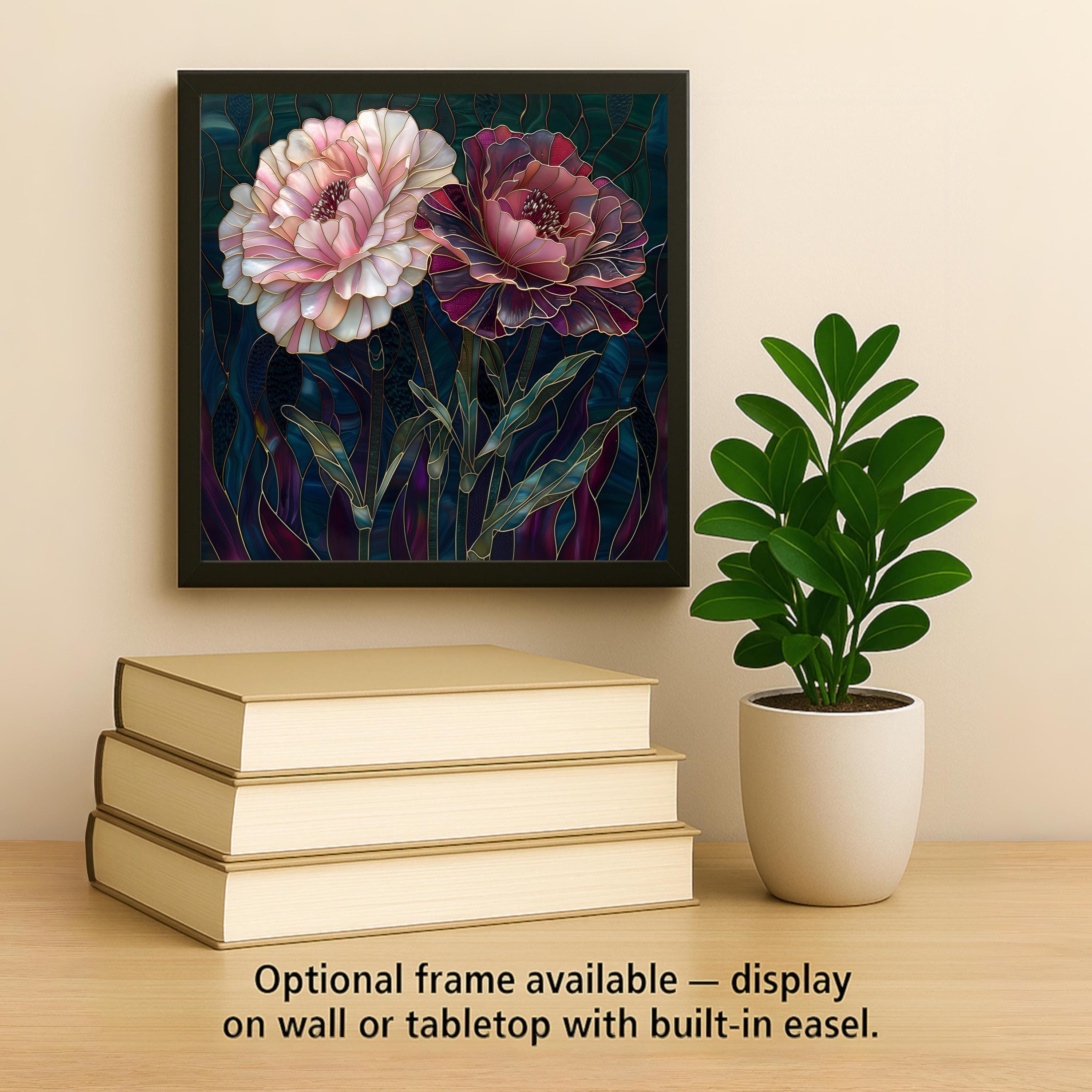 The jewel-tone background anchors neutral walls while the luminous petals create subtle drama. Pair with other carnation or magnolia designs for a cohesive, curated floral collection.