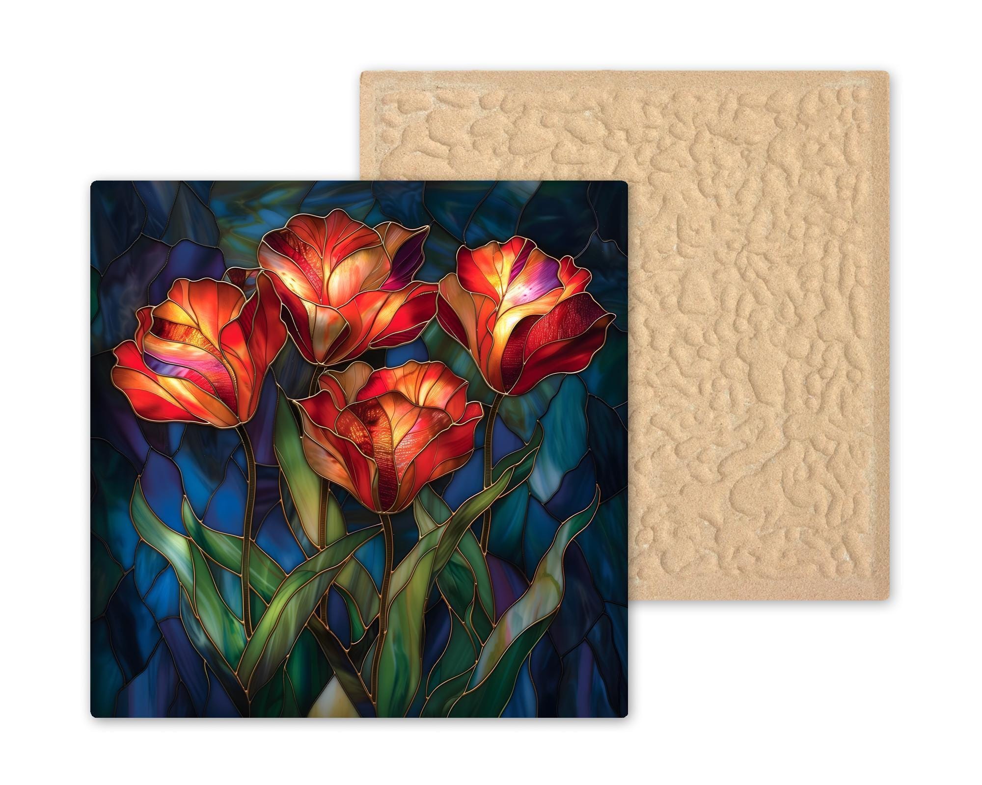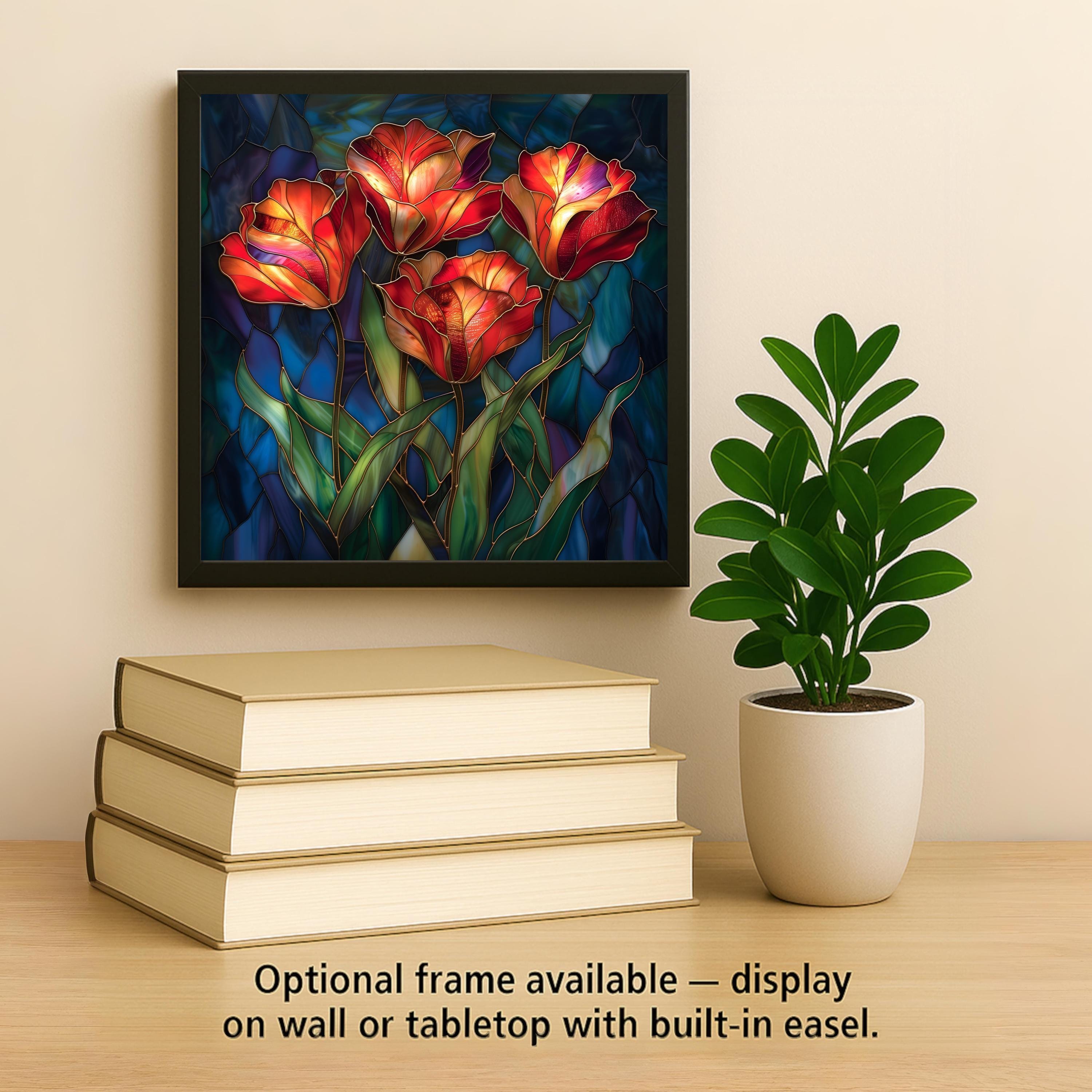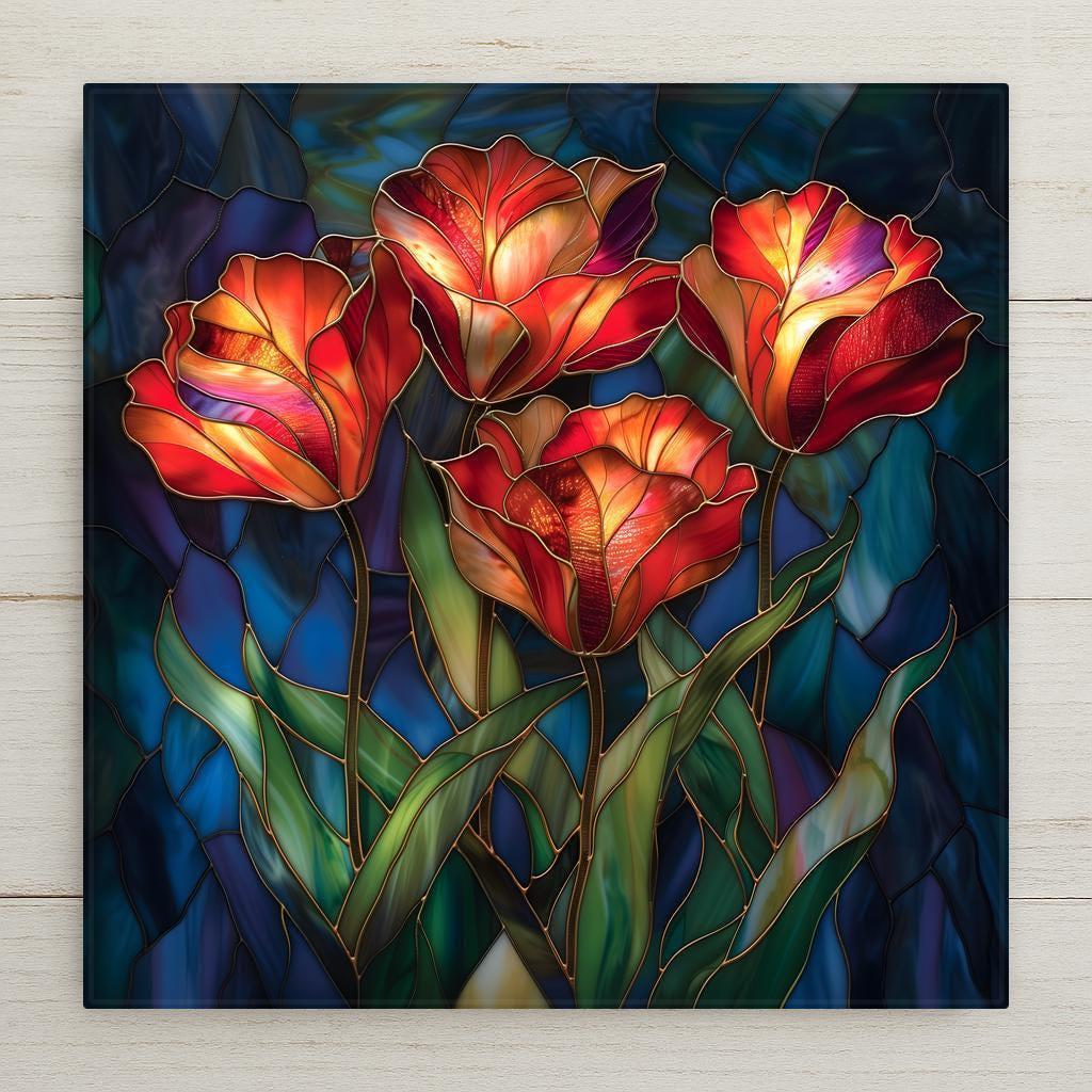 Tulips symbolize renewal, warmth, and enduring affection. This four-bloom composition creates natural balance while allowing each flower to radiate with individual glow and depth.
