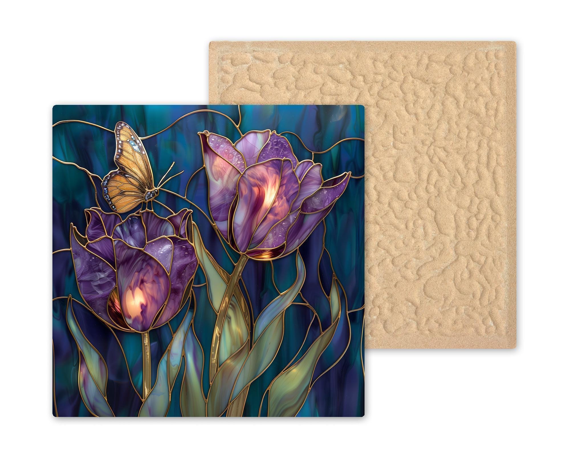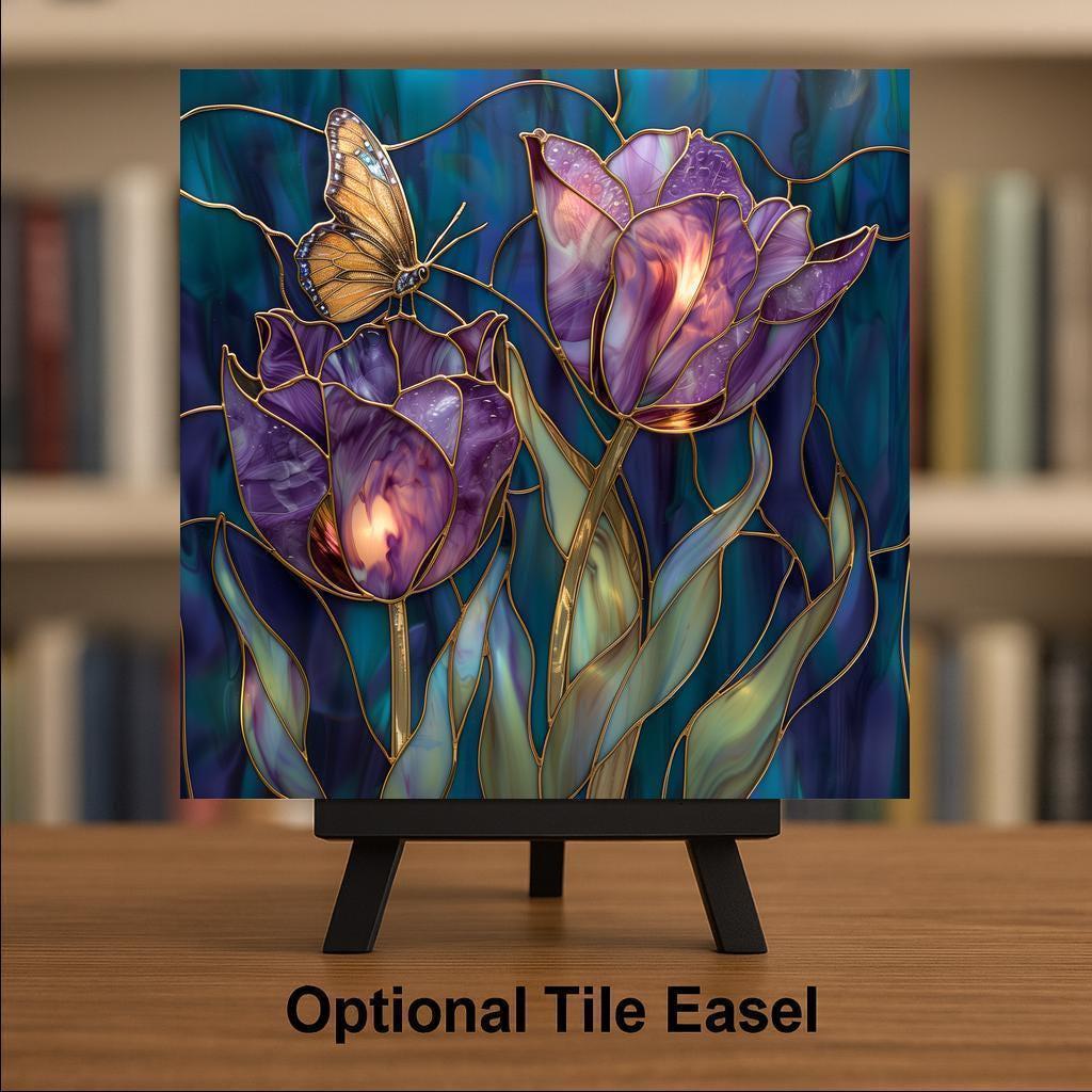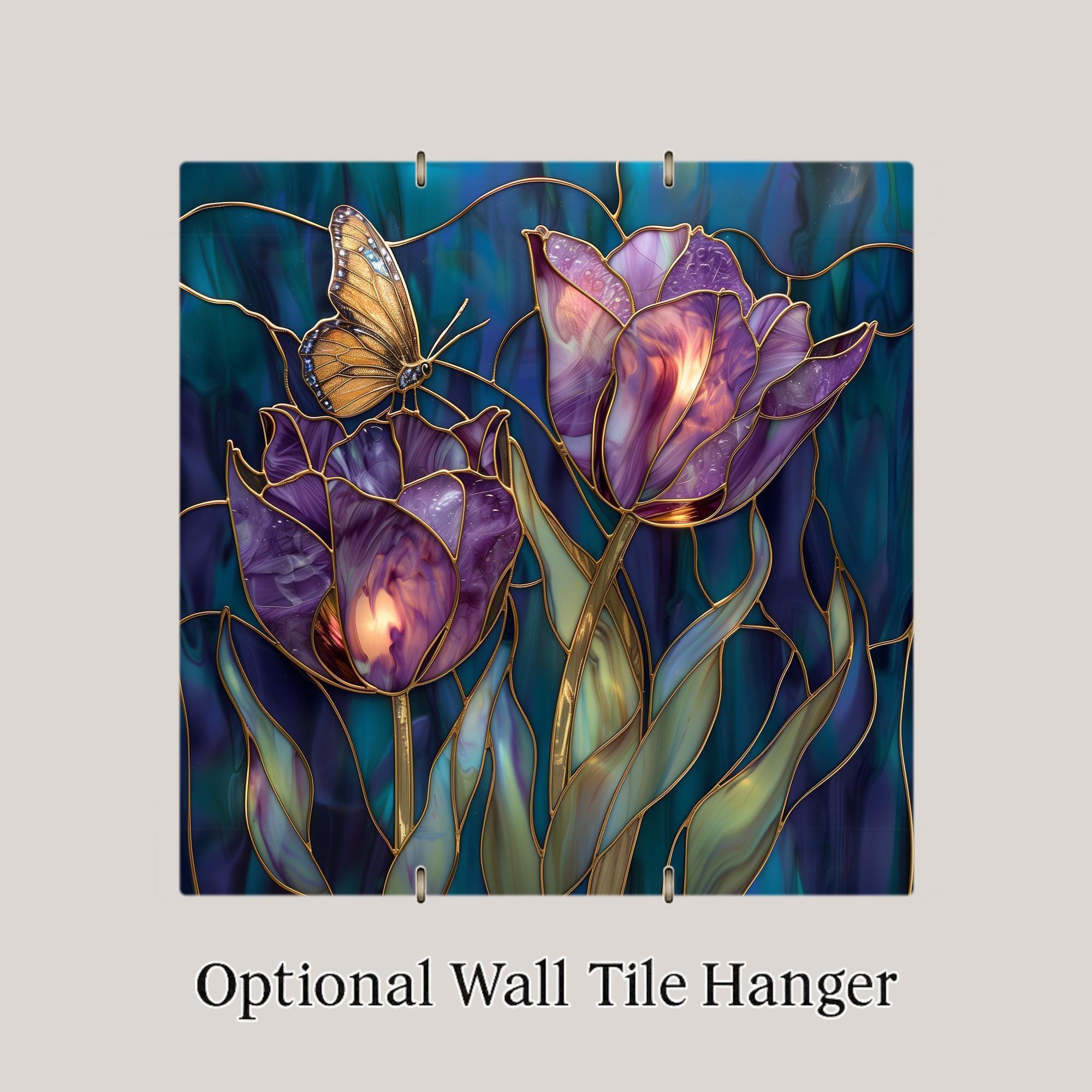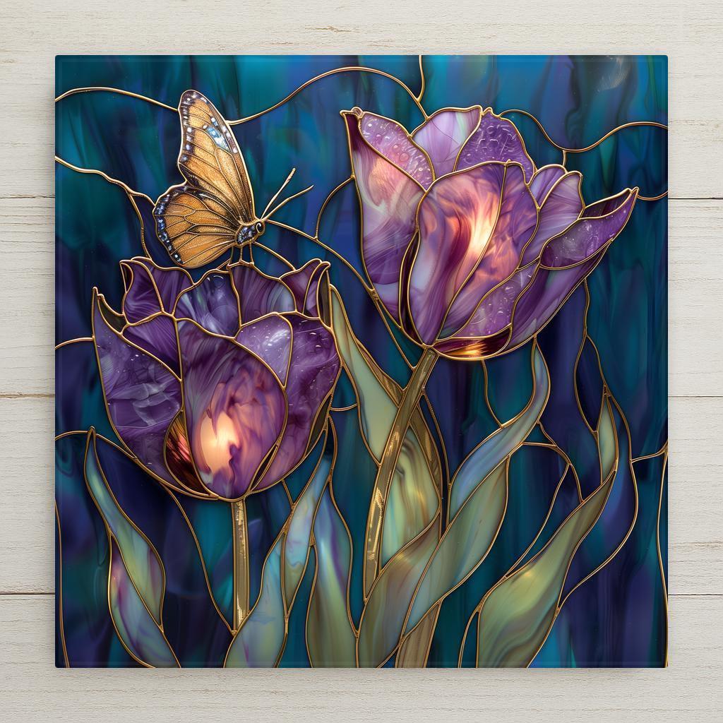 This design captures the quiet luxury of violet tulips in bloom. The gold-lined segmentation creates a luminous effect, while the deep background tones provide balance and richness.