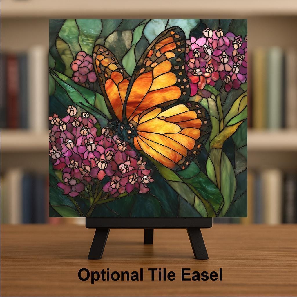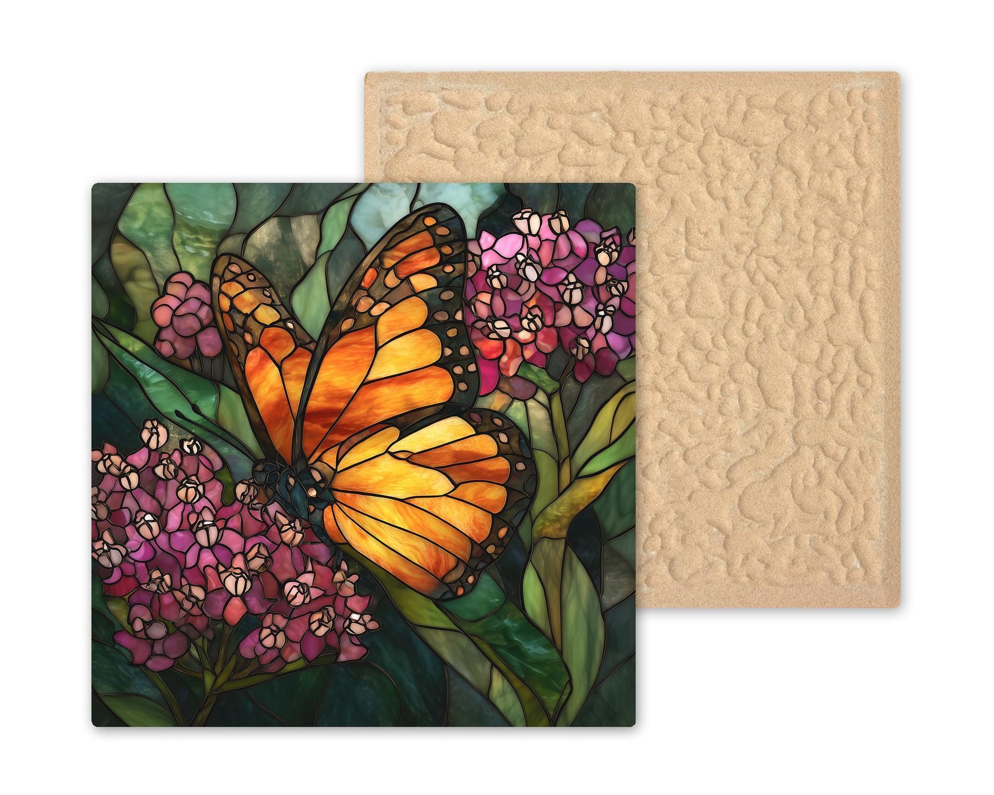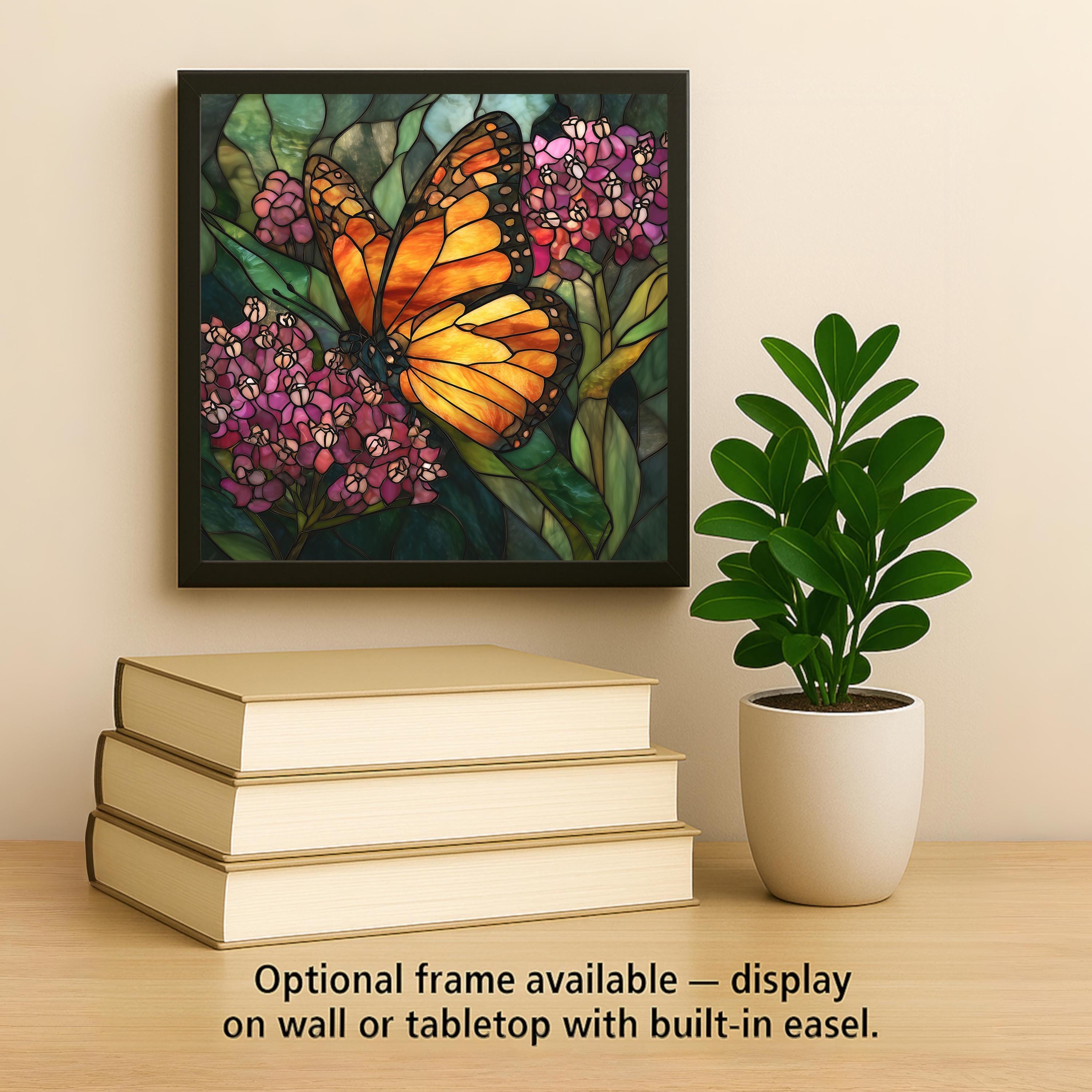 The monarch butterfly is a symbol of transformation and renewal. This design captures that energy through glowing orange tones balanced against soft florals and layered greenery.