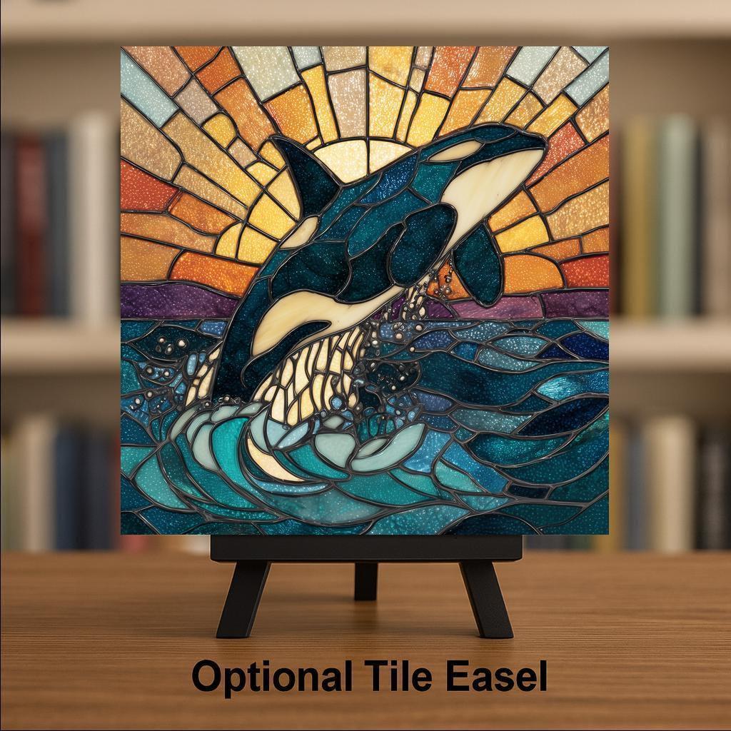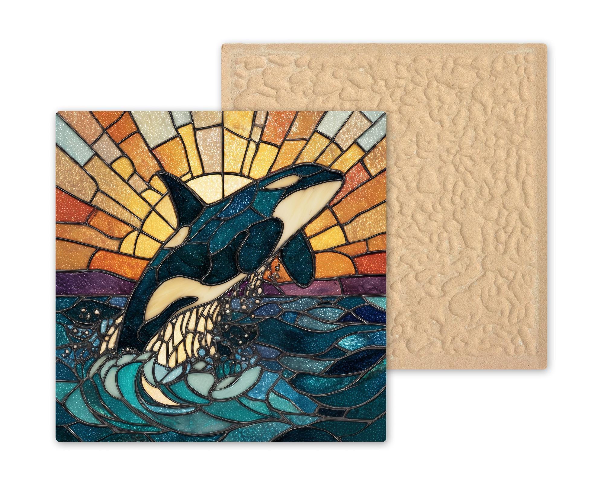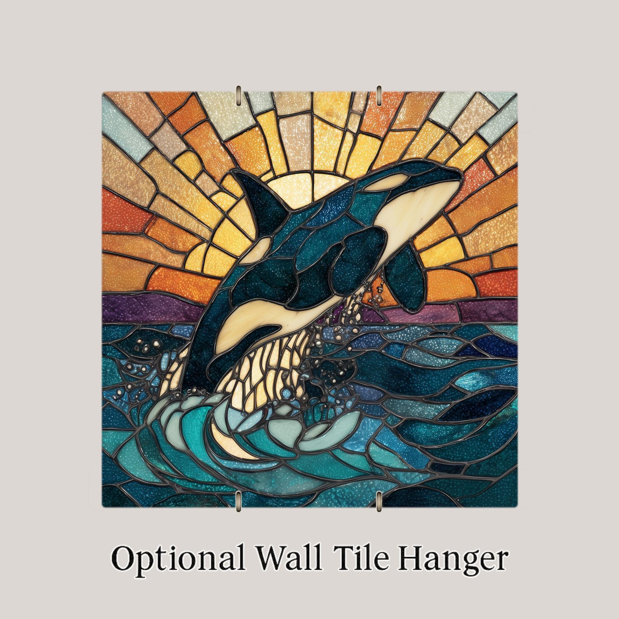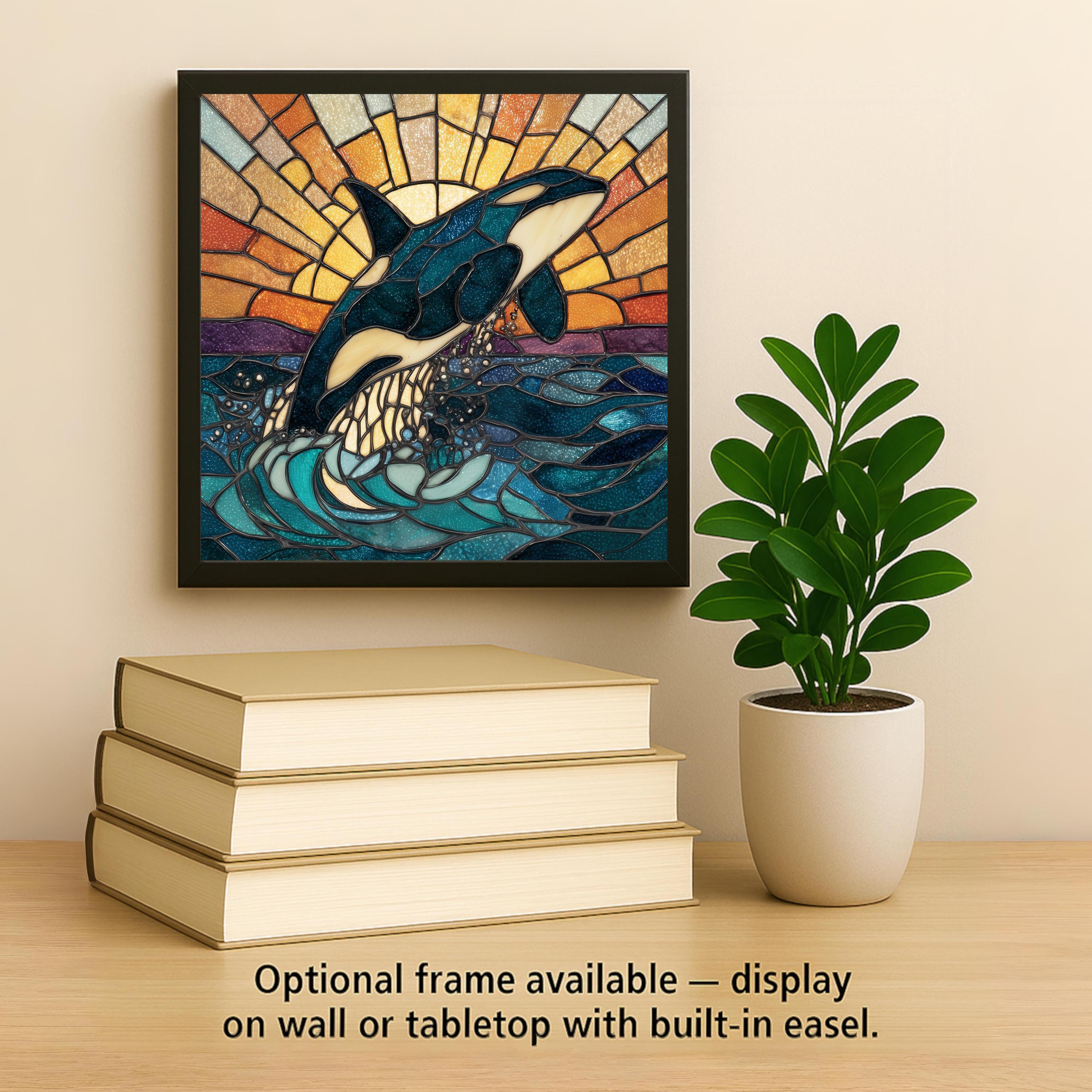 The orca symbolizes strength, intelligence, and connection to the sea. This design brings that symbolism to life through bold composition and radiant sunset light.