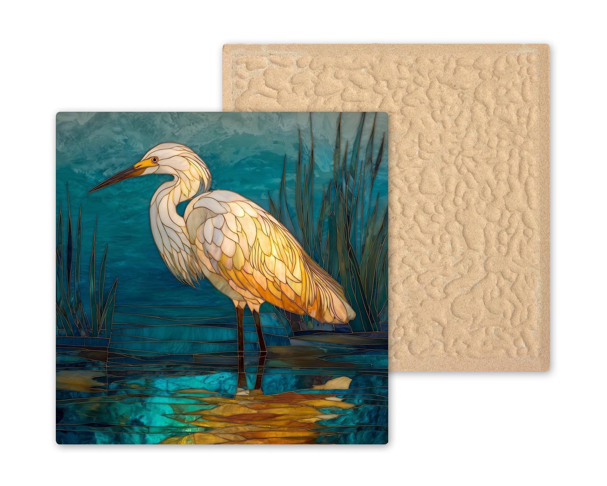 Whether gifted to a bird enthusiast or chosen to elevate a serene space, this tile adds refined coastal character with timeless stained-glass-inspired detail.