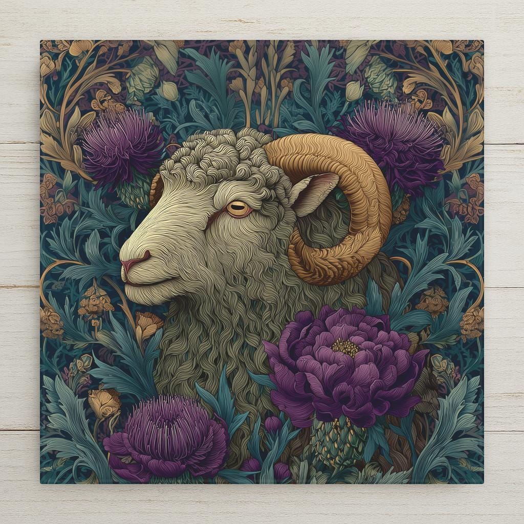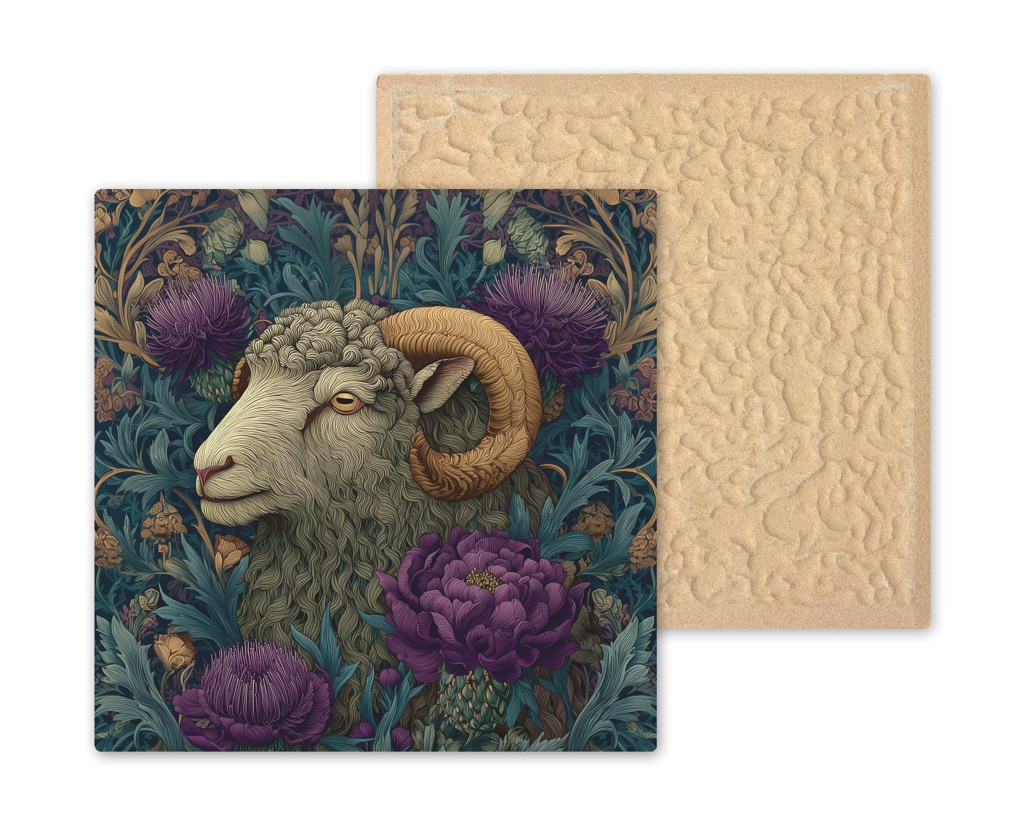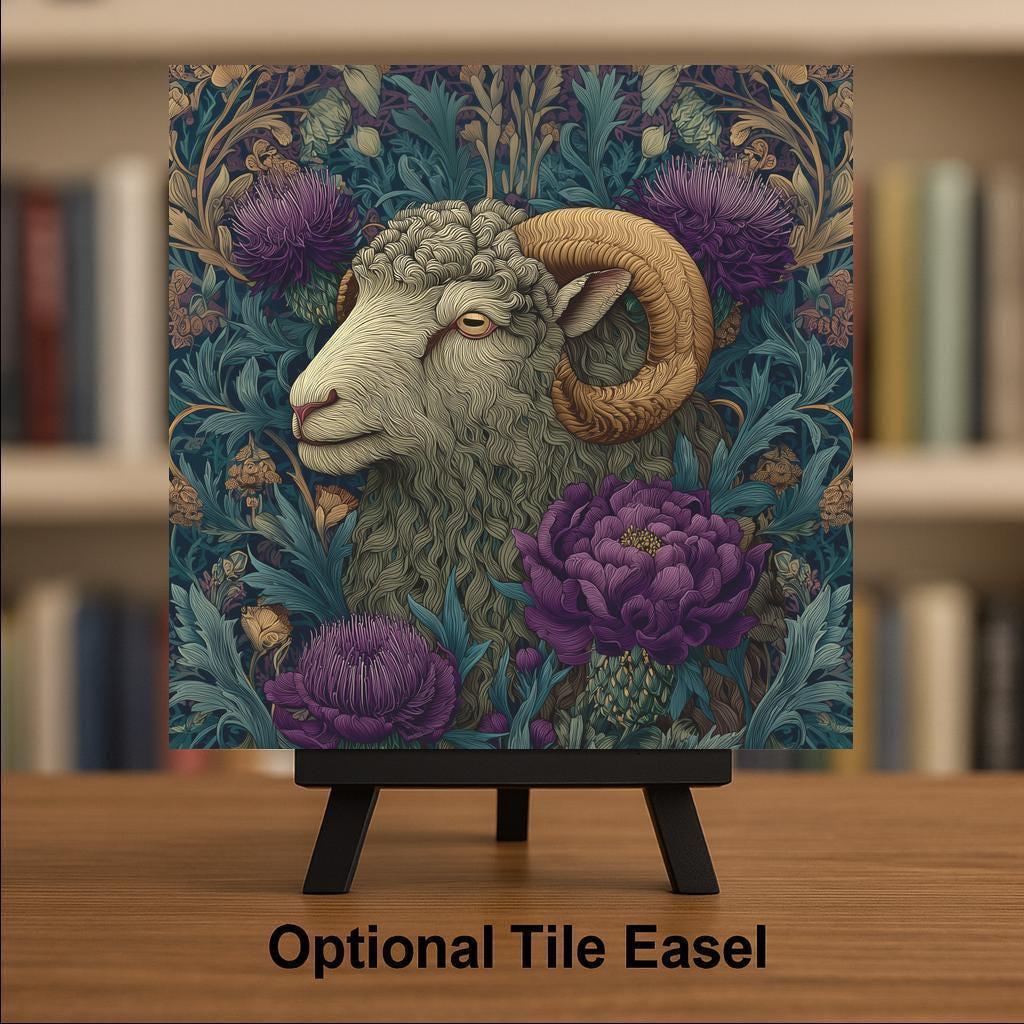 Collectors who love Highland animal art often build themed sets. This ram pairs beautifully with Highland cow, thistle, or woodland botanical pieces for 2- and 3-tile bundles that increase visual impact.