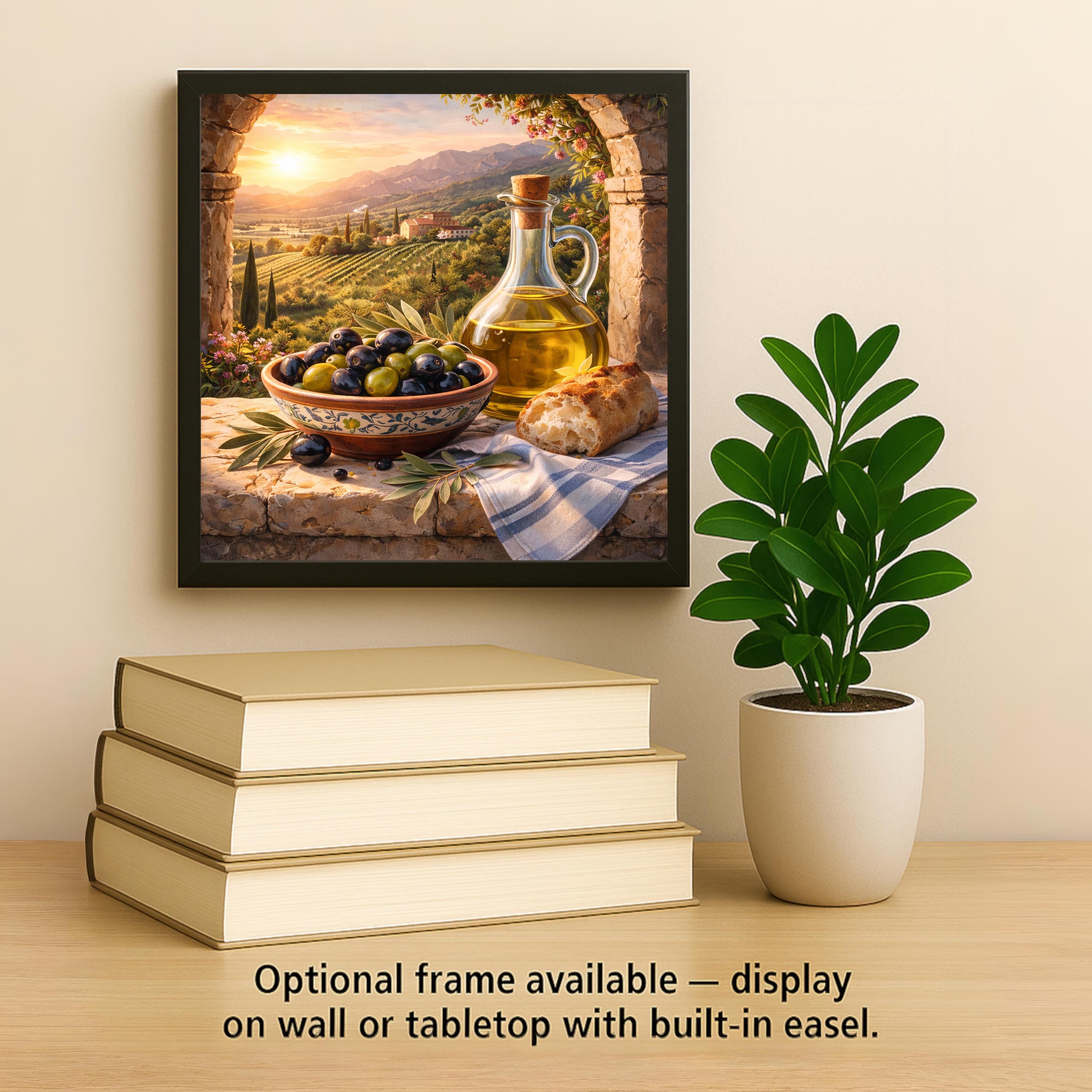 The balanced color palette of olive green, vineyard gold, and rustic stone makes this wall decor especially versatile. It complements neutral kitchens, farmhouse styles, coastal Mediterranean interiors, and Italian countryside themes.