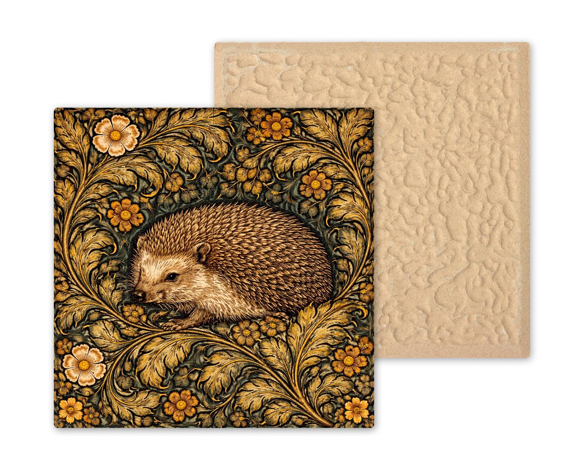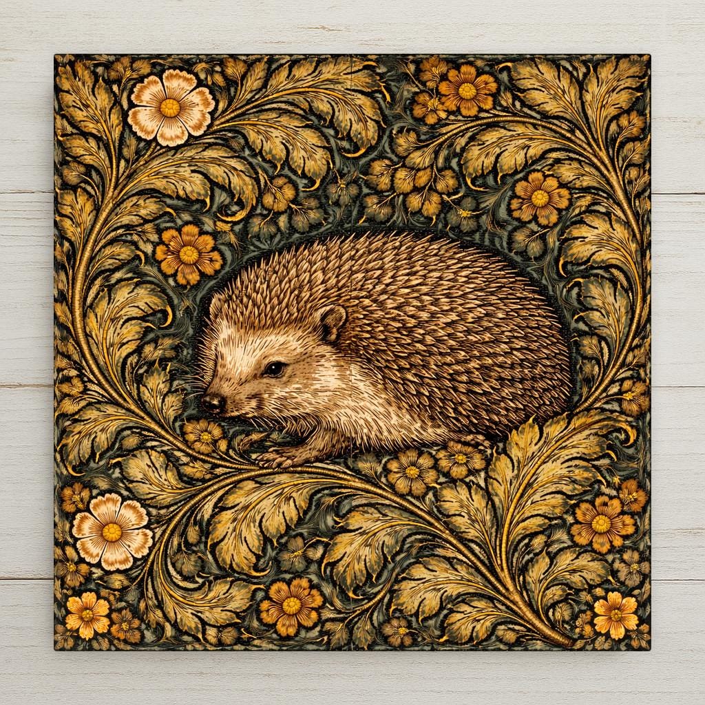 This hedgehog design balances gentle character with structured botanical symmetry. It feels whimsical yet sophisticated, making it versatile for both nurseries and curated adult spaces.