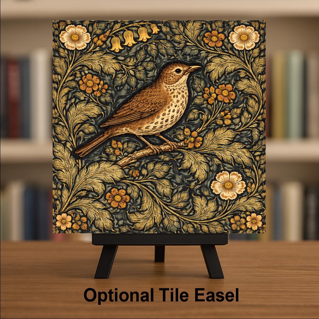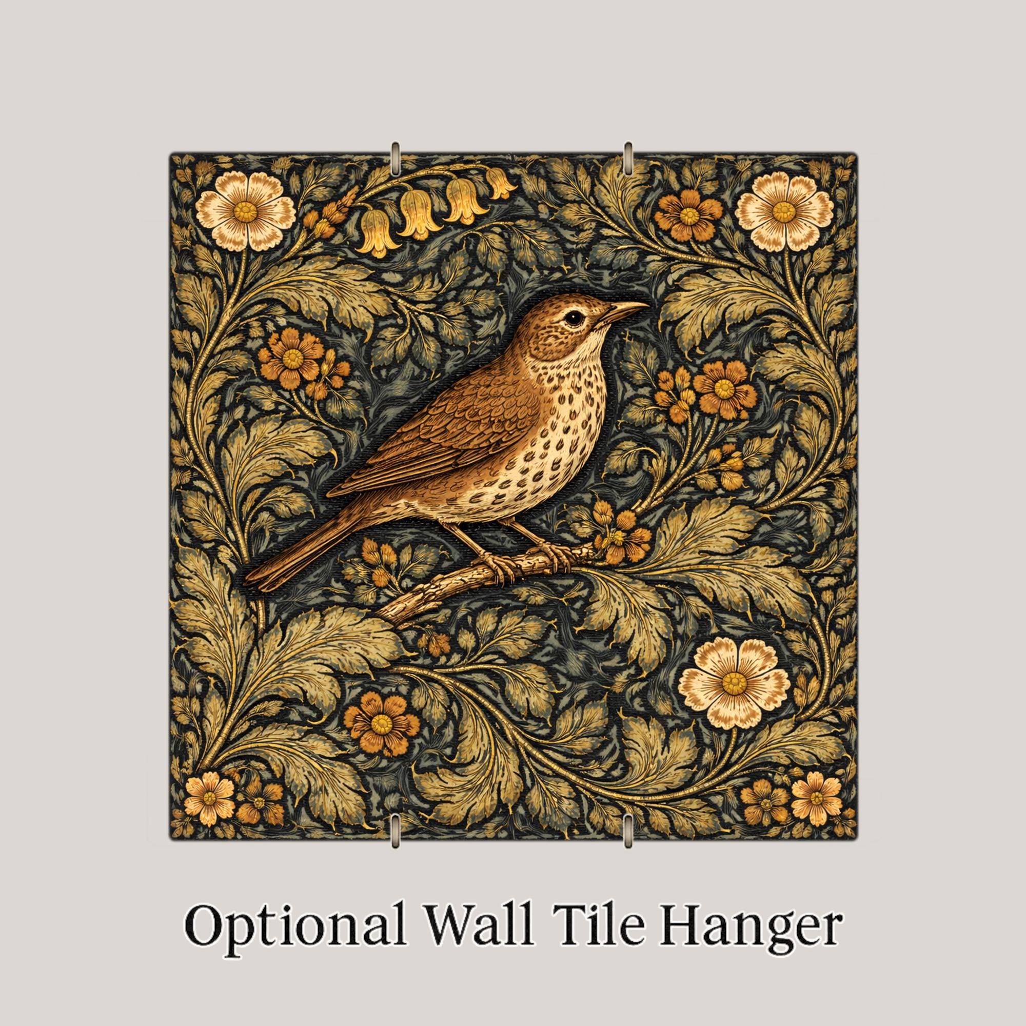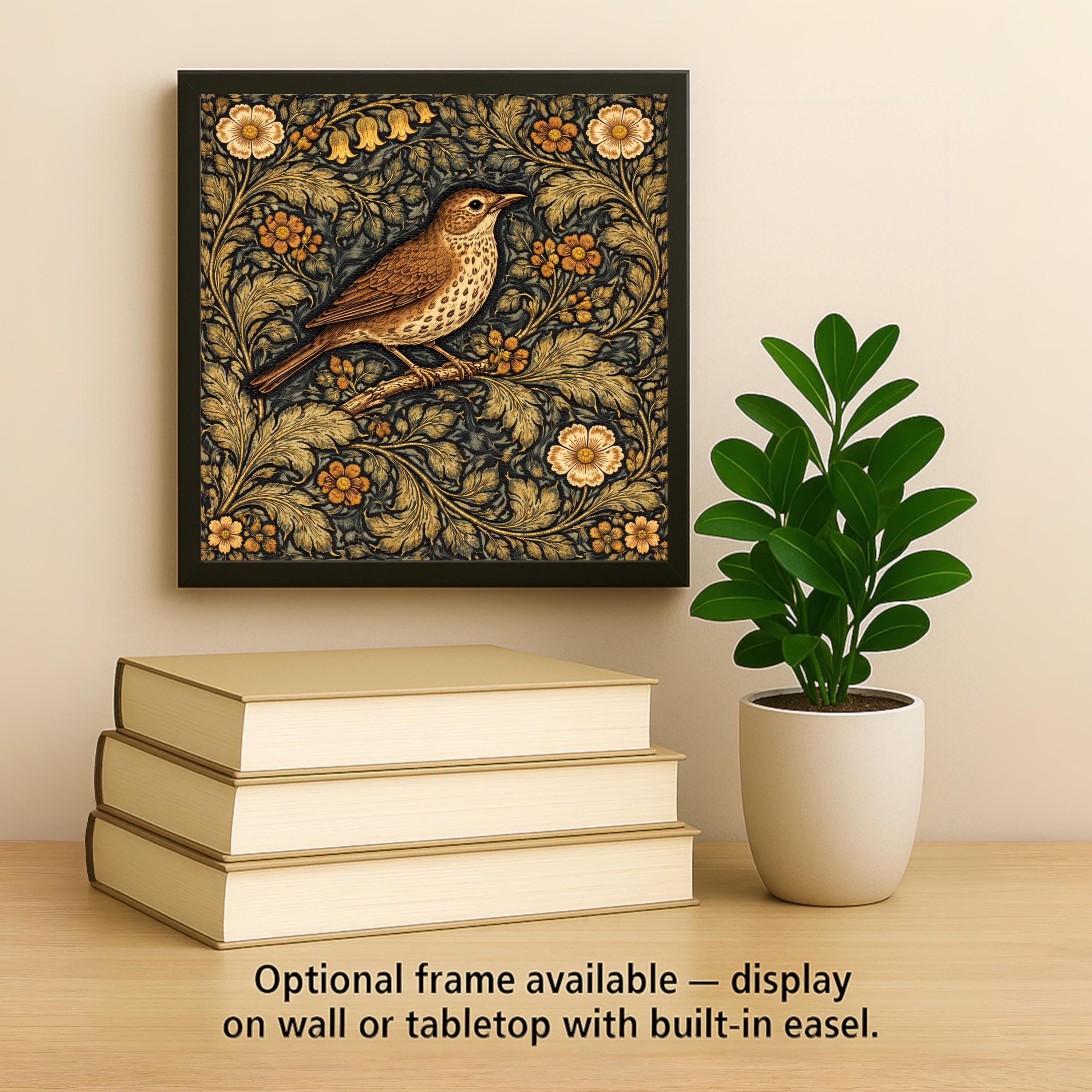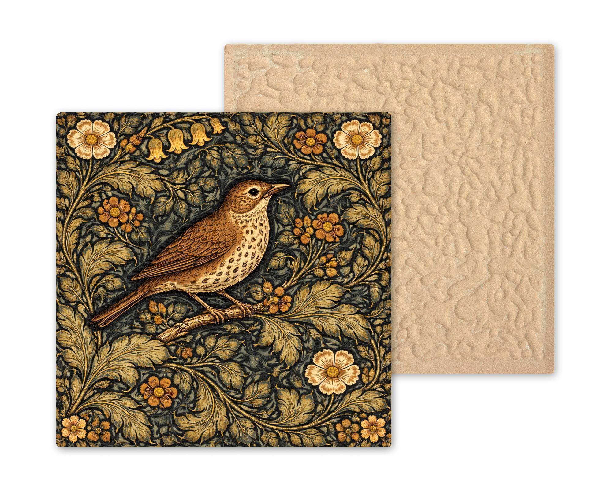 Inspired by historic Arts and Crafts textiles, this design emphasizes flowing botanical rhythm and ornamental symmetry. The songbird introduces softness and movement while maintaining classic structure.
