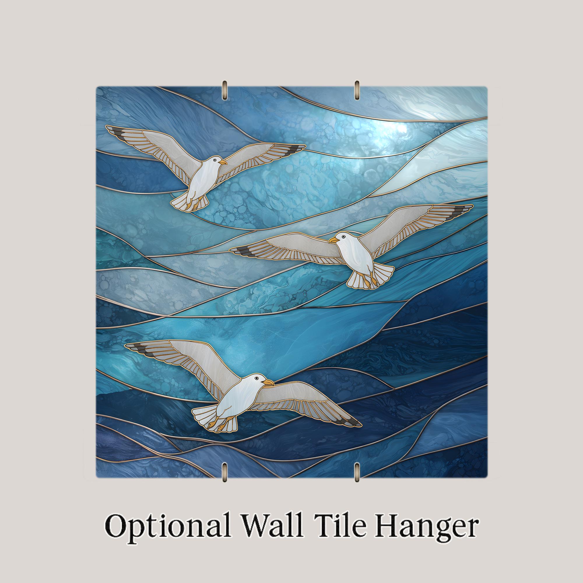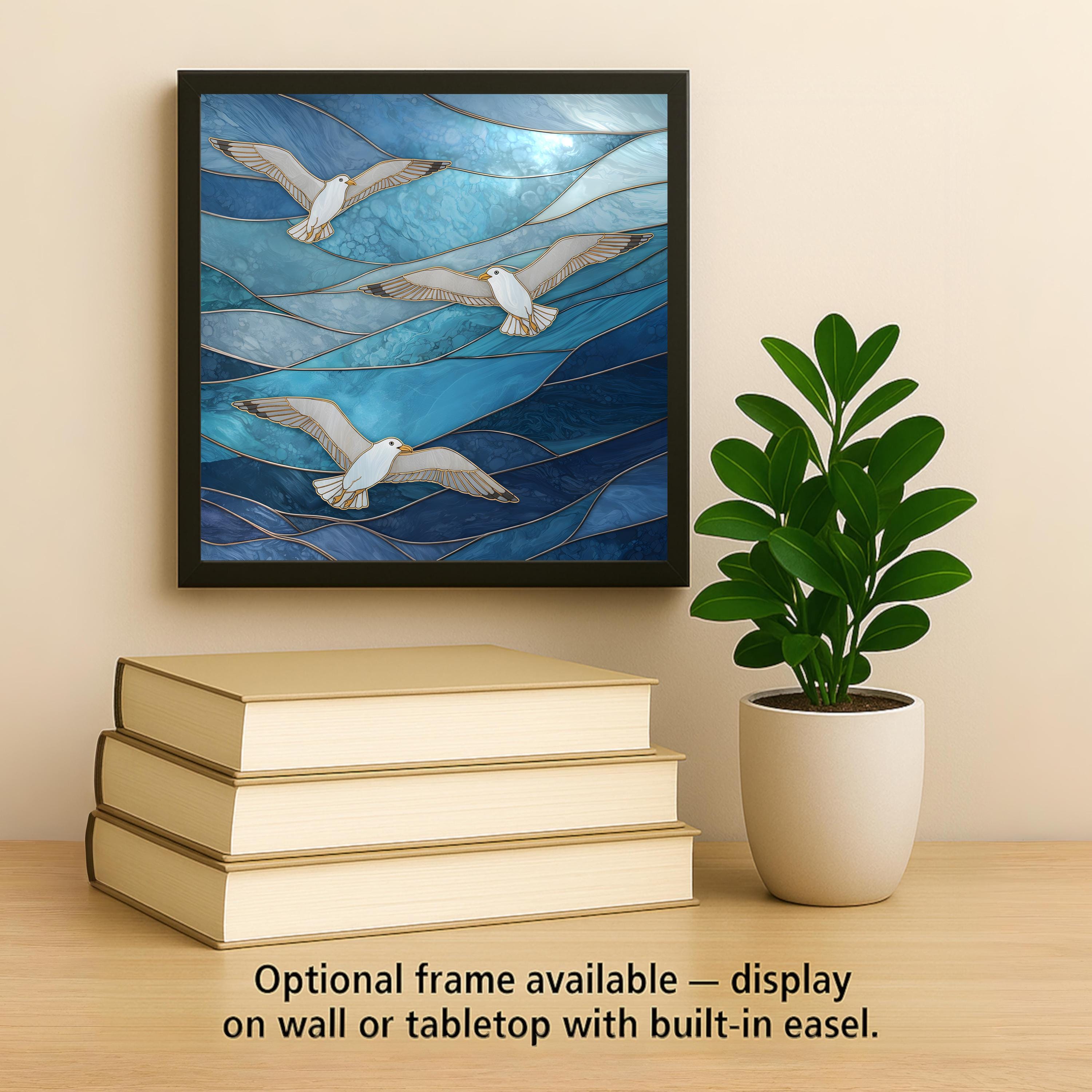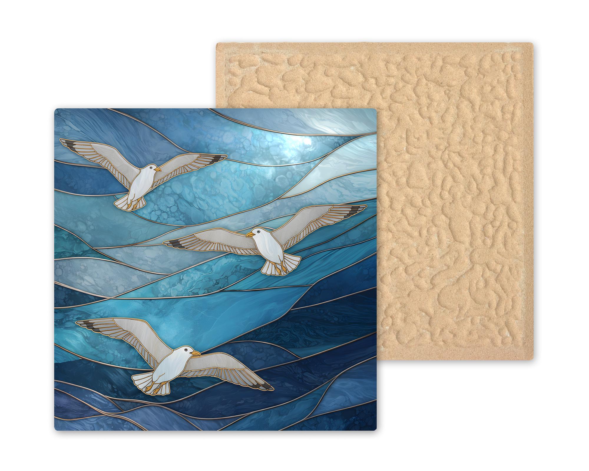 The flowing ocean currents and graceful seabirds create a calming visual rhythm that fits naturally within beach house interiors, coastal cottages, and nautical themed spaces.