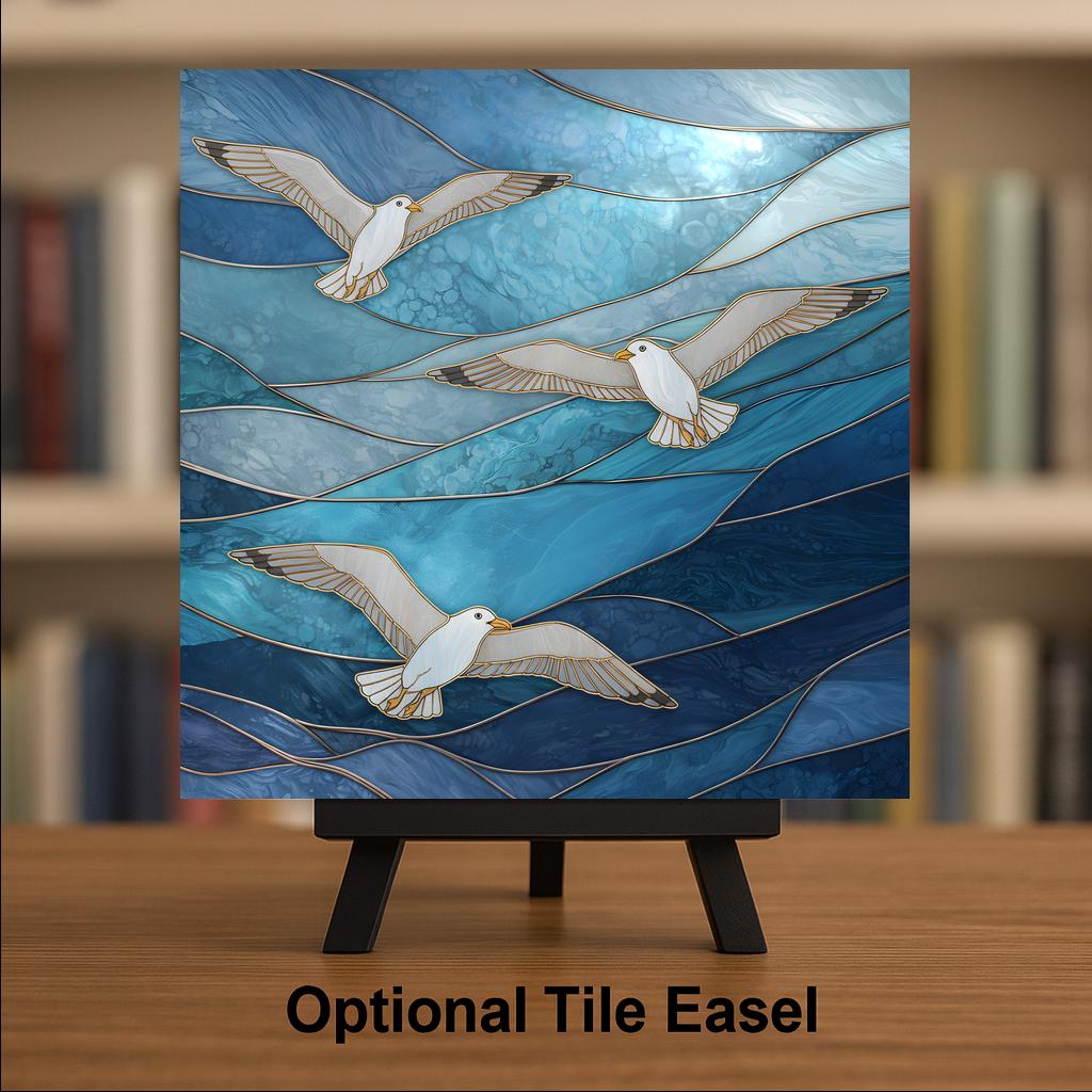 Inspired by classic coastal imagery and the movement of ocean waves, this design blends stained glass style with modern decorative composition.