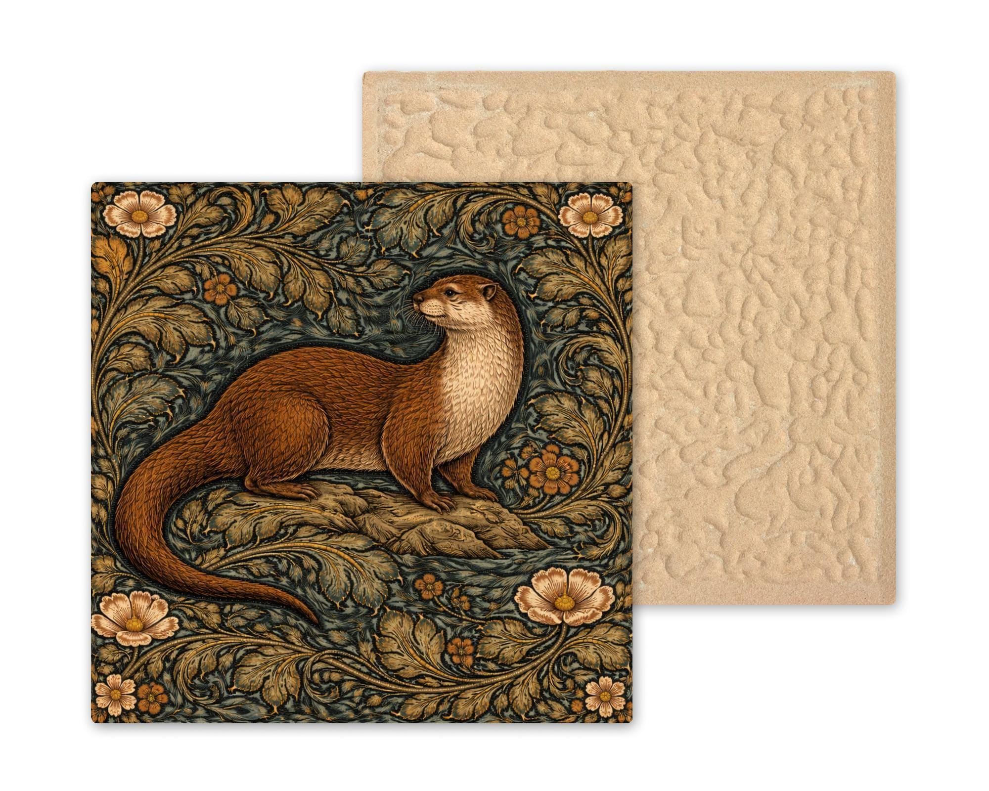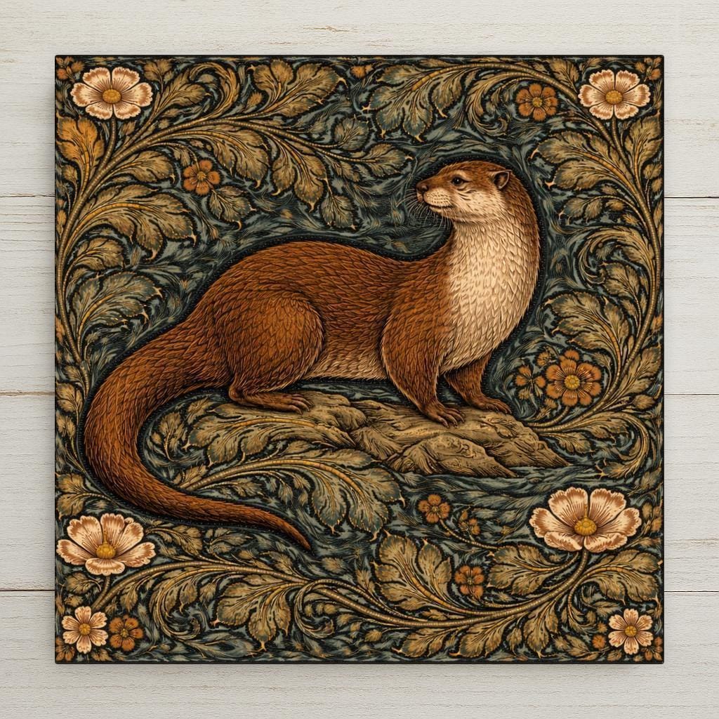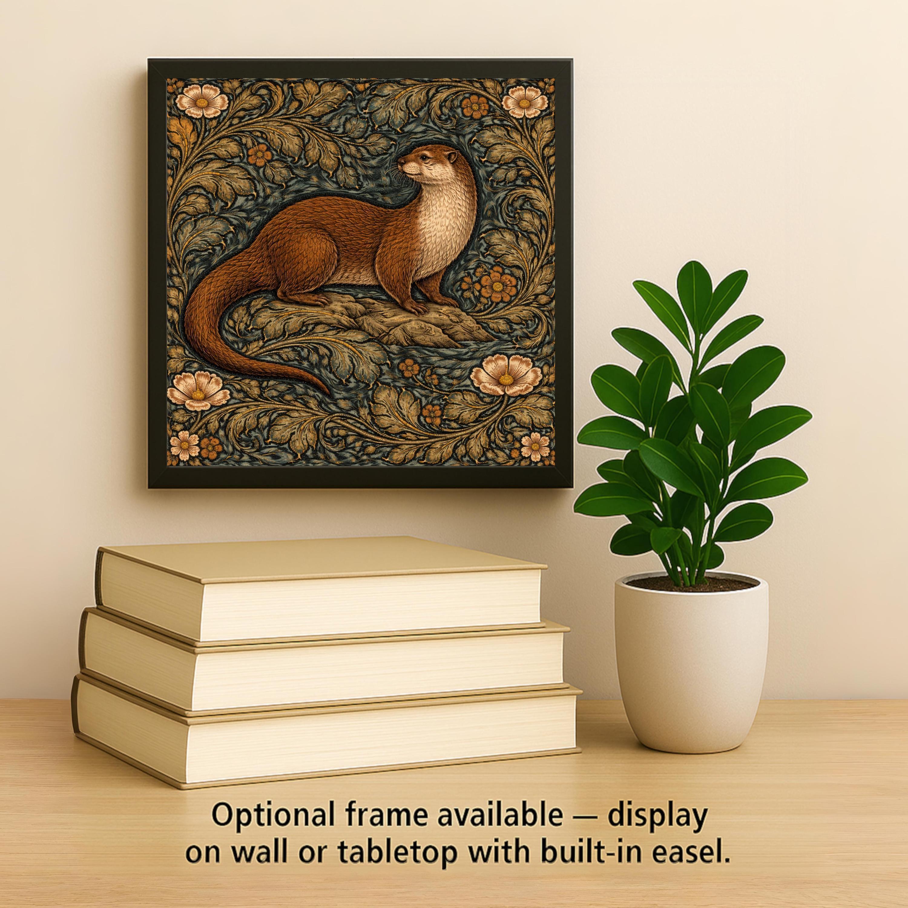 The otter becomes part of the flowing botanical movement rather than simply sitting on top of the design, creating a piece that feels both artistic and timeless.