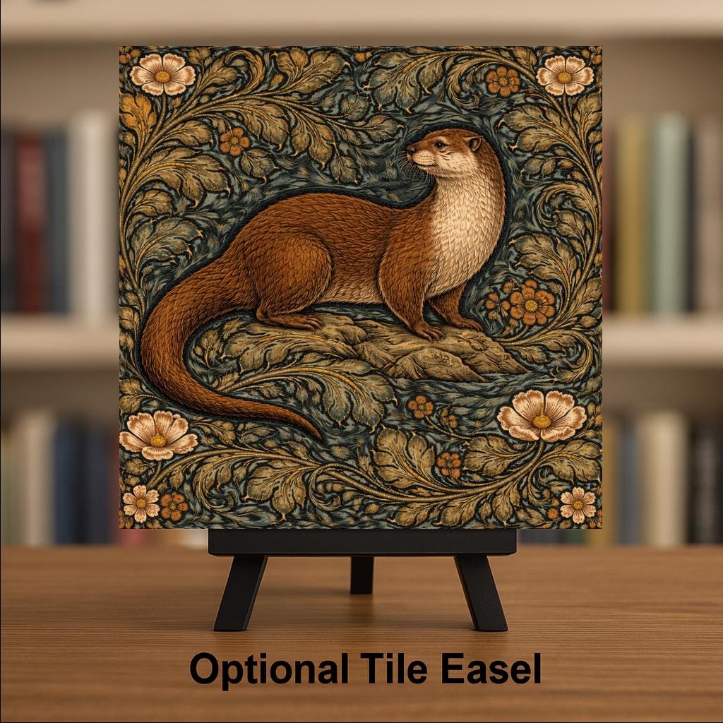 The otter becomes part of the flowing botanical movement rather than simply sitting on top of the design, creating a piece that feels both artistic and timeless.