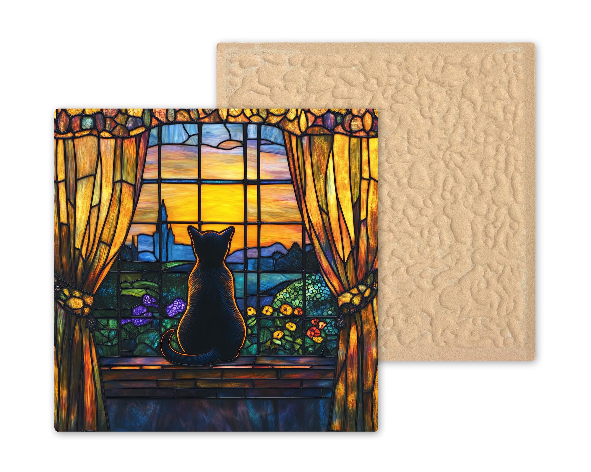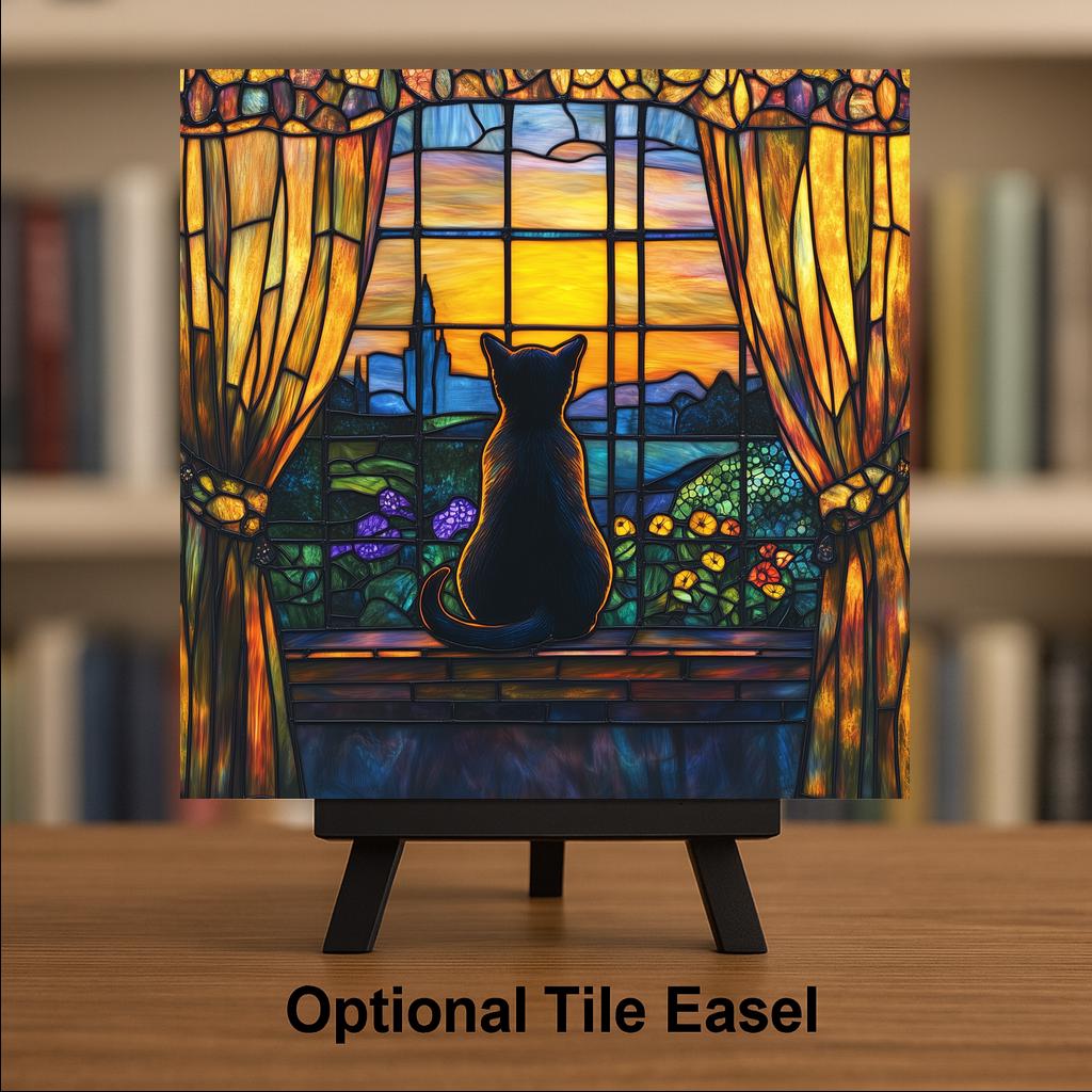 This cat in window ceramic tile was designed for the housewarming buyer and the cat owner decorator in equal measure. A cat in a window is one of the most universally recognized symbols of a home that is fully lived in — a home with character, warmth, and a cat who has claimed the best light source. Buyers who see this tile tend to say the same thing: "that looks exactly like my cat."