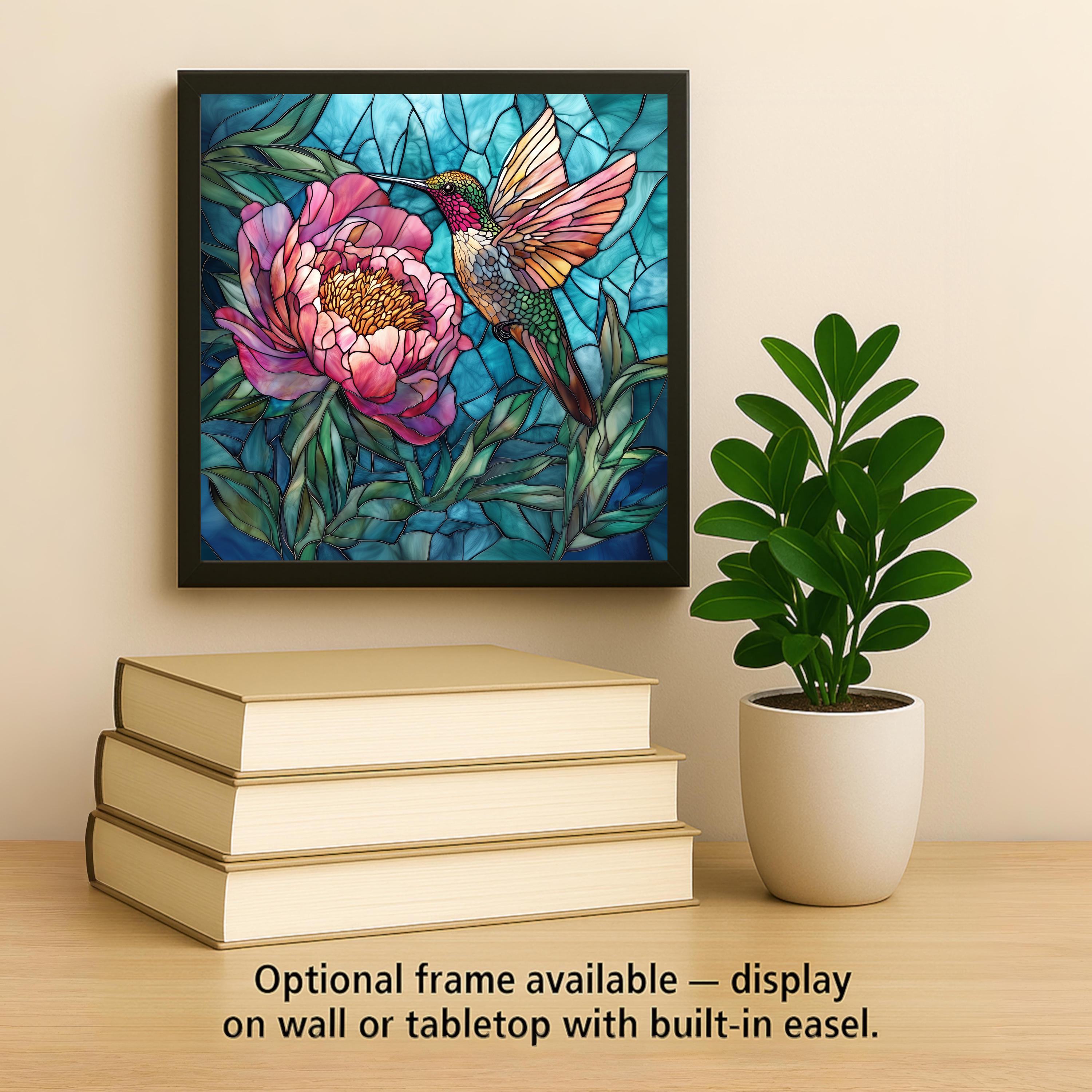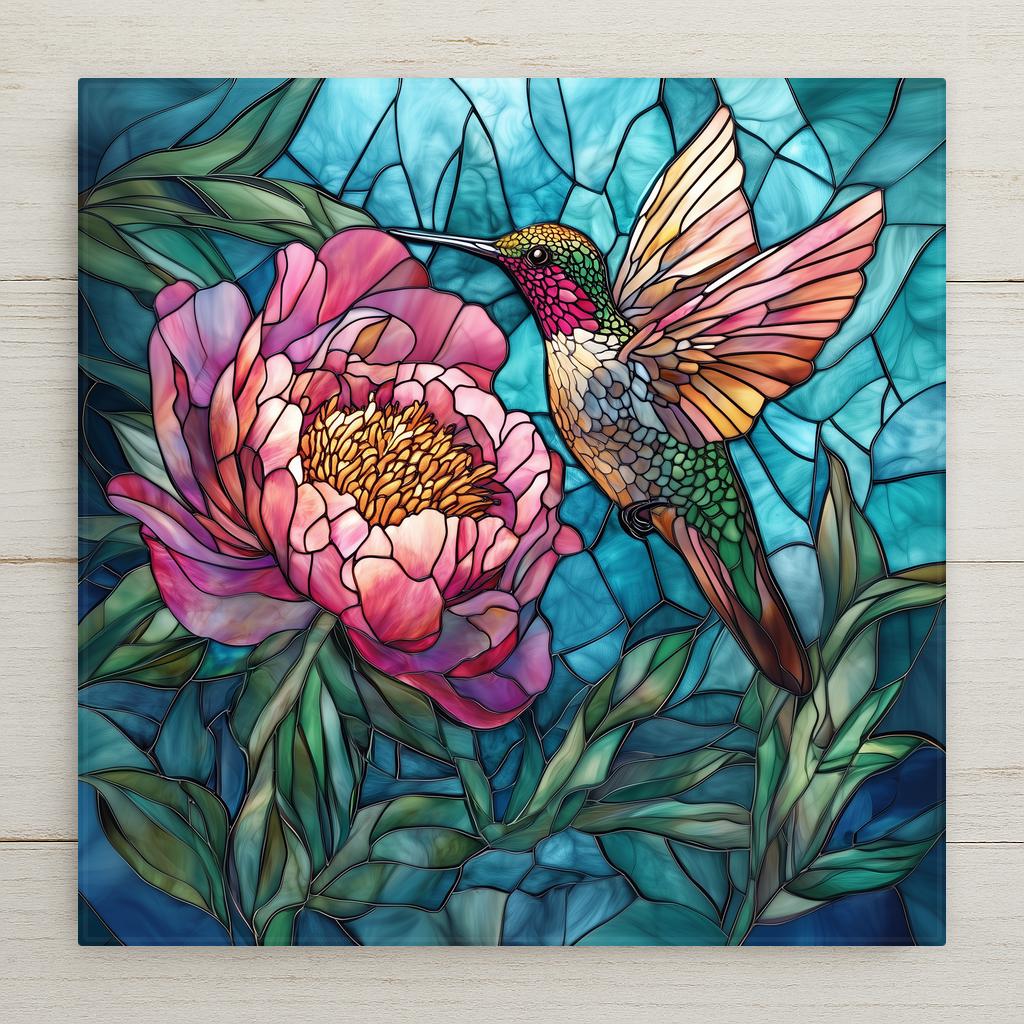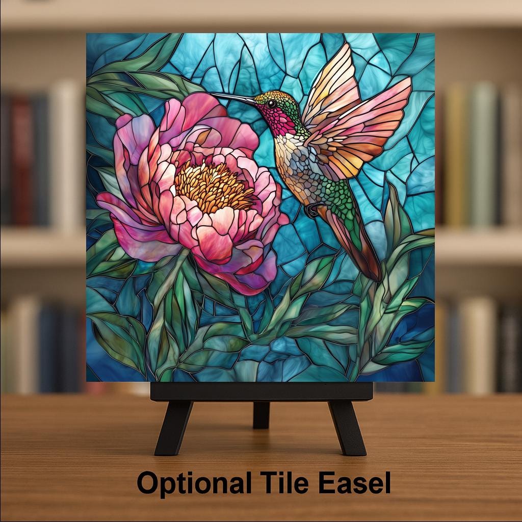 This hummingbird and peony ceramic tile was designed specifically to combine two of the most searched subjects in the floral and bird art category — and your existing hummingbird tiles already prove the demand. The addition of the peony opens the listing to the large and passionate peony collector community that has no other natural landing point in your catalog. Together they pull from four distinct buyer lanes: hummingbird lovers, peony lovers, floral art collectors, and garden home decorators.
