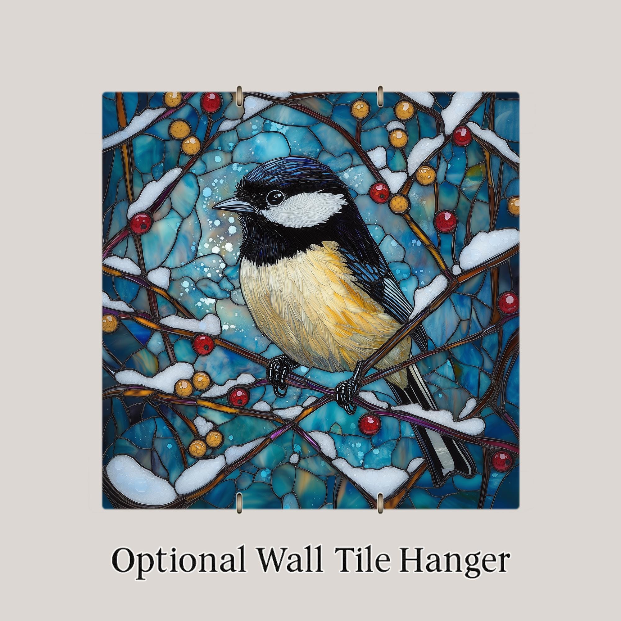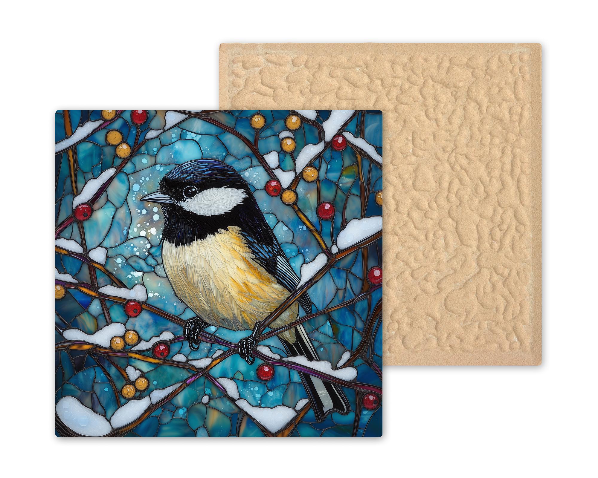 Although it has the look of stained glass, the artwork is permanently infused into the tile surface, creating a smooth finish with vivid color and fine bird portrait detail.