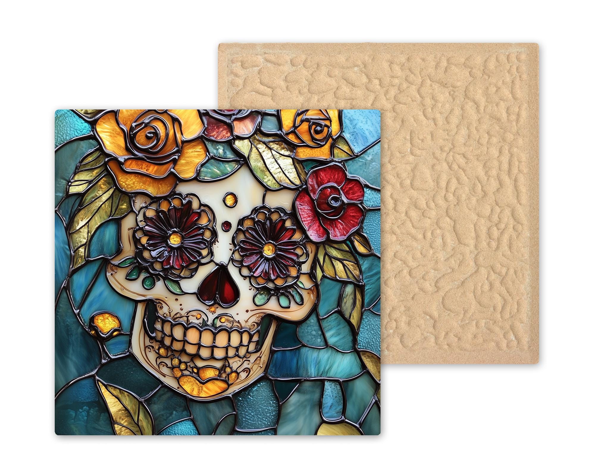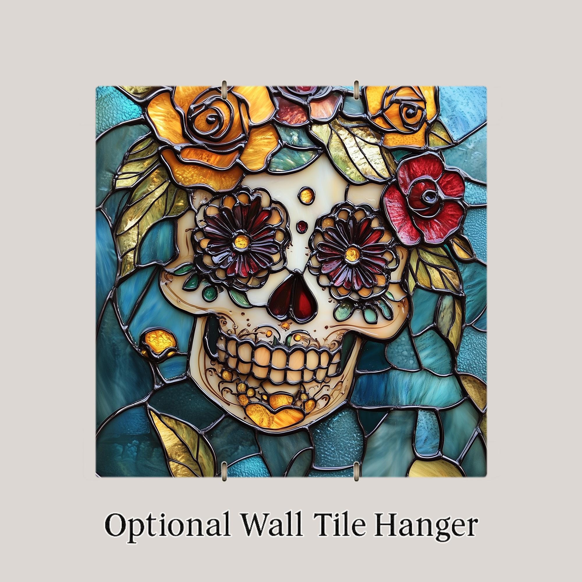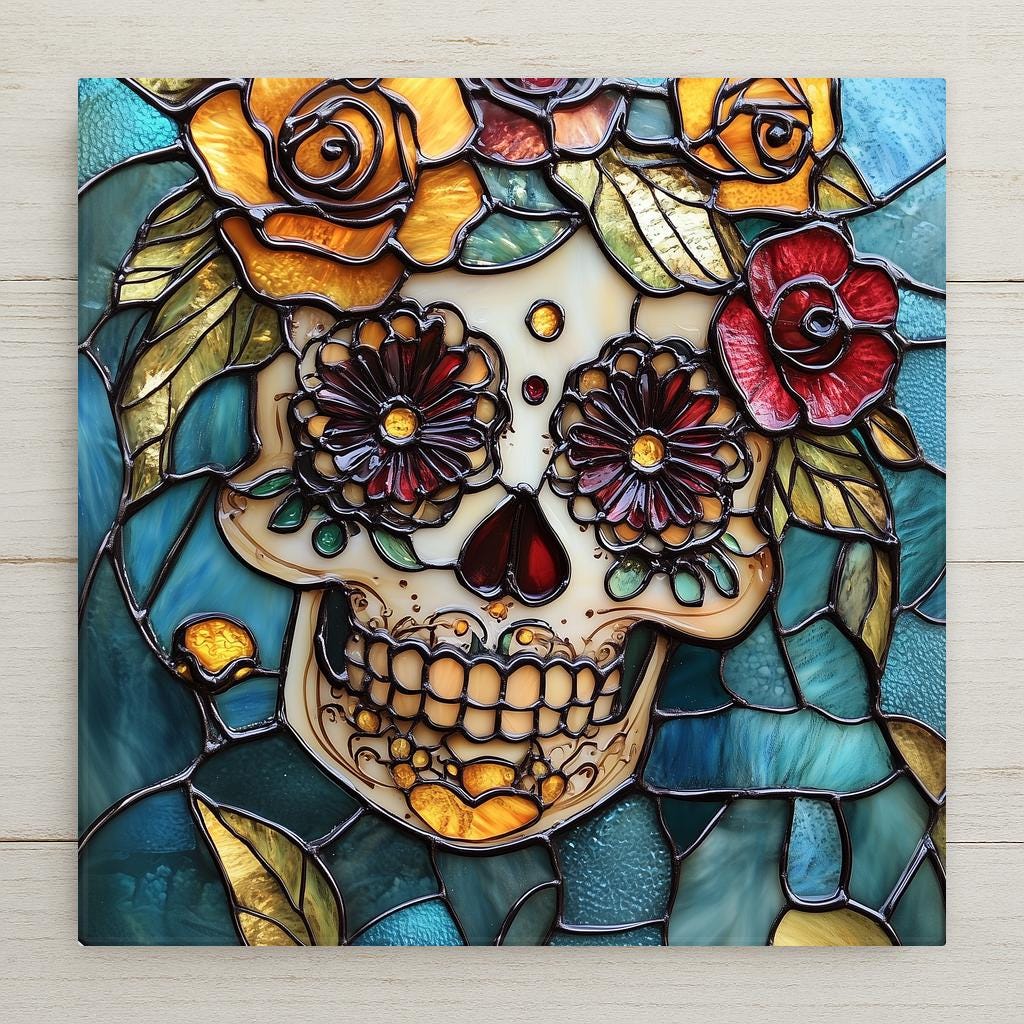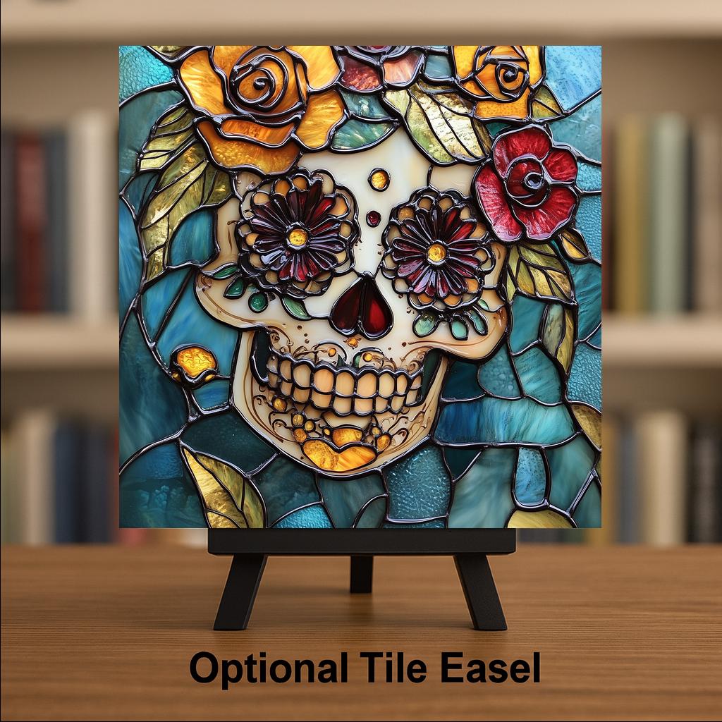 The buyer of this tile has a connection to Mexican culture, to Día de los Muertos, or to someone they've lost. They want something that celebrates life and memory at the same time — and nothing does that more beautifully than the sugar skull tradition. This tile captures that spirit in jewel-toned stained glass style that looks more beautiful in person than any photo can show.