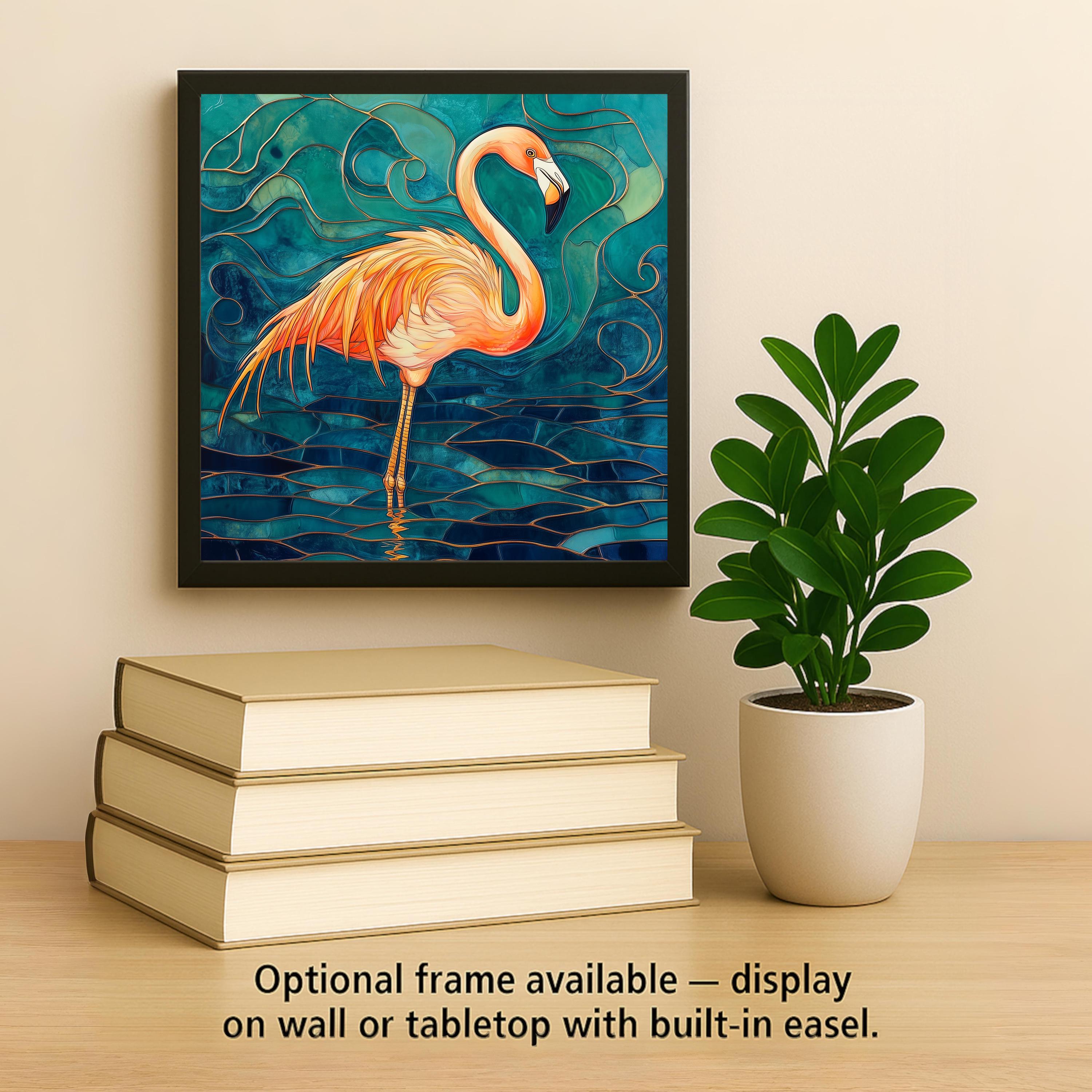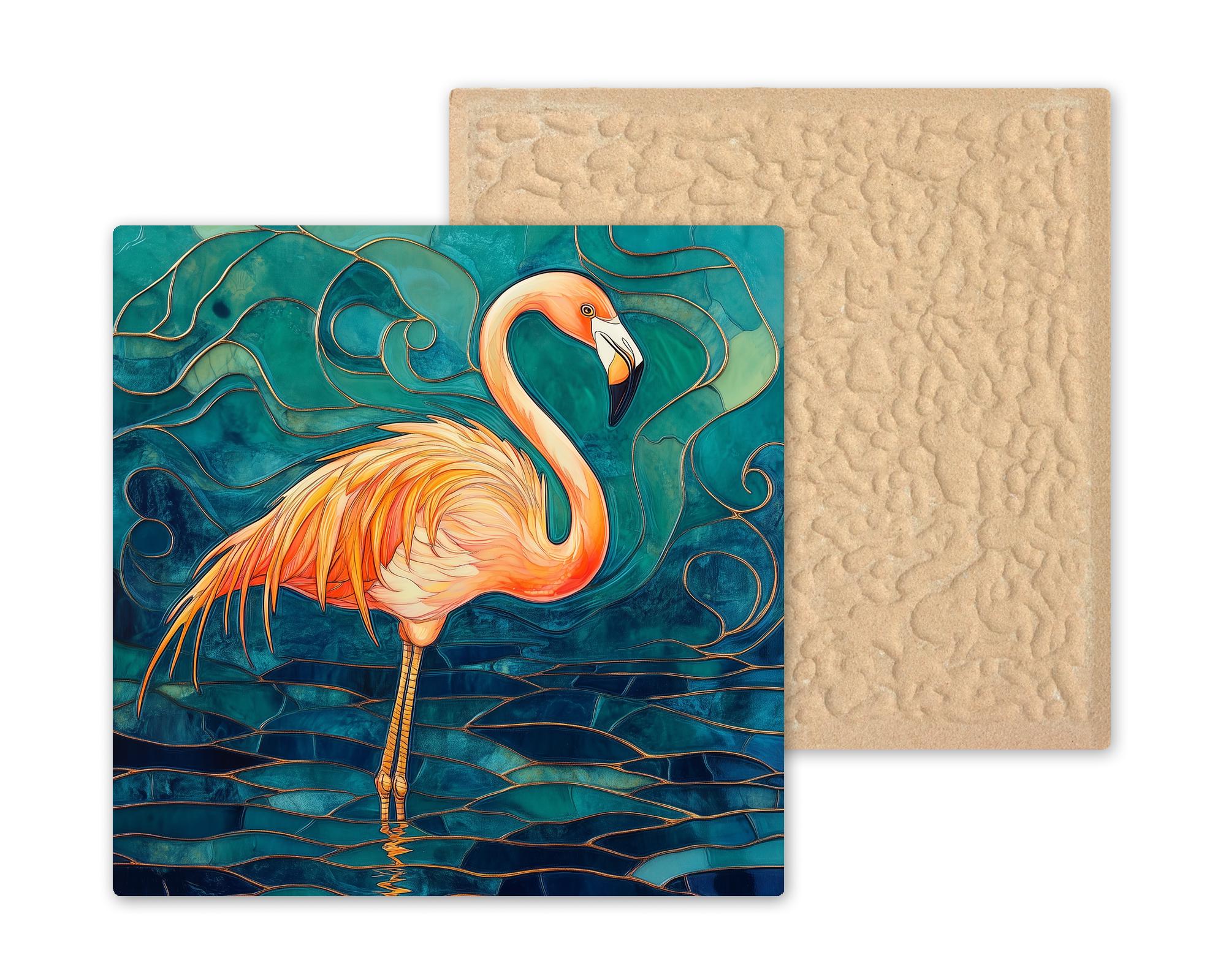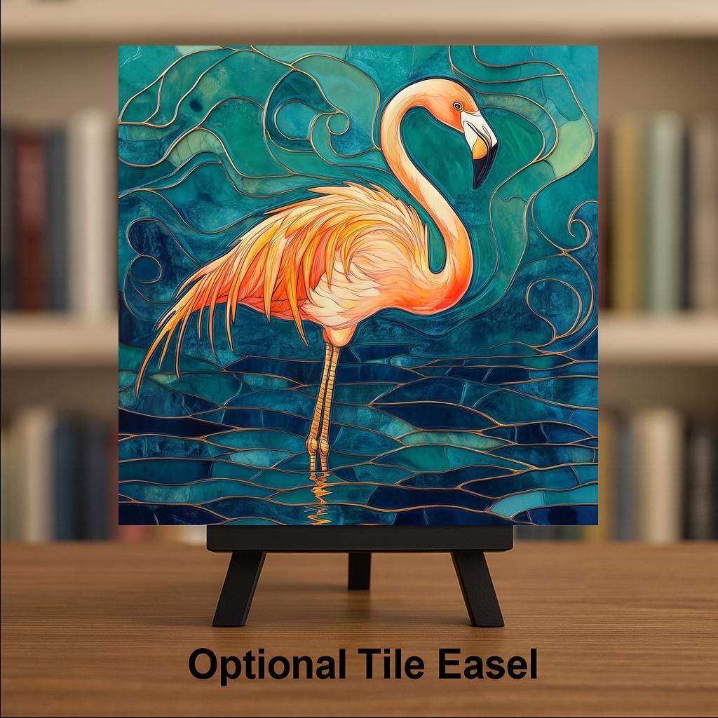 The buyer of this tile wants the classic flamingo — the one that looks like genuine stained glass art, clean and luminous with perfect leaded detail. They want something elegant rather than energetic, the kind of piece that looks like it came from a serious art collection rather than a novelty shop. This tile pairs naturally with the Swirling Flamingo tile for a two-piece collection that offers both energy and elegance.
