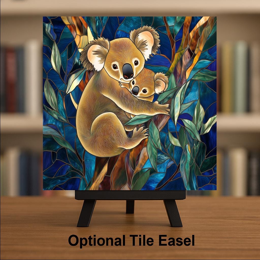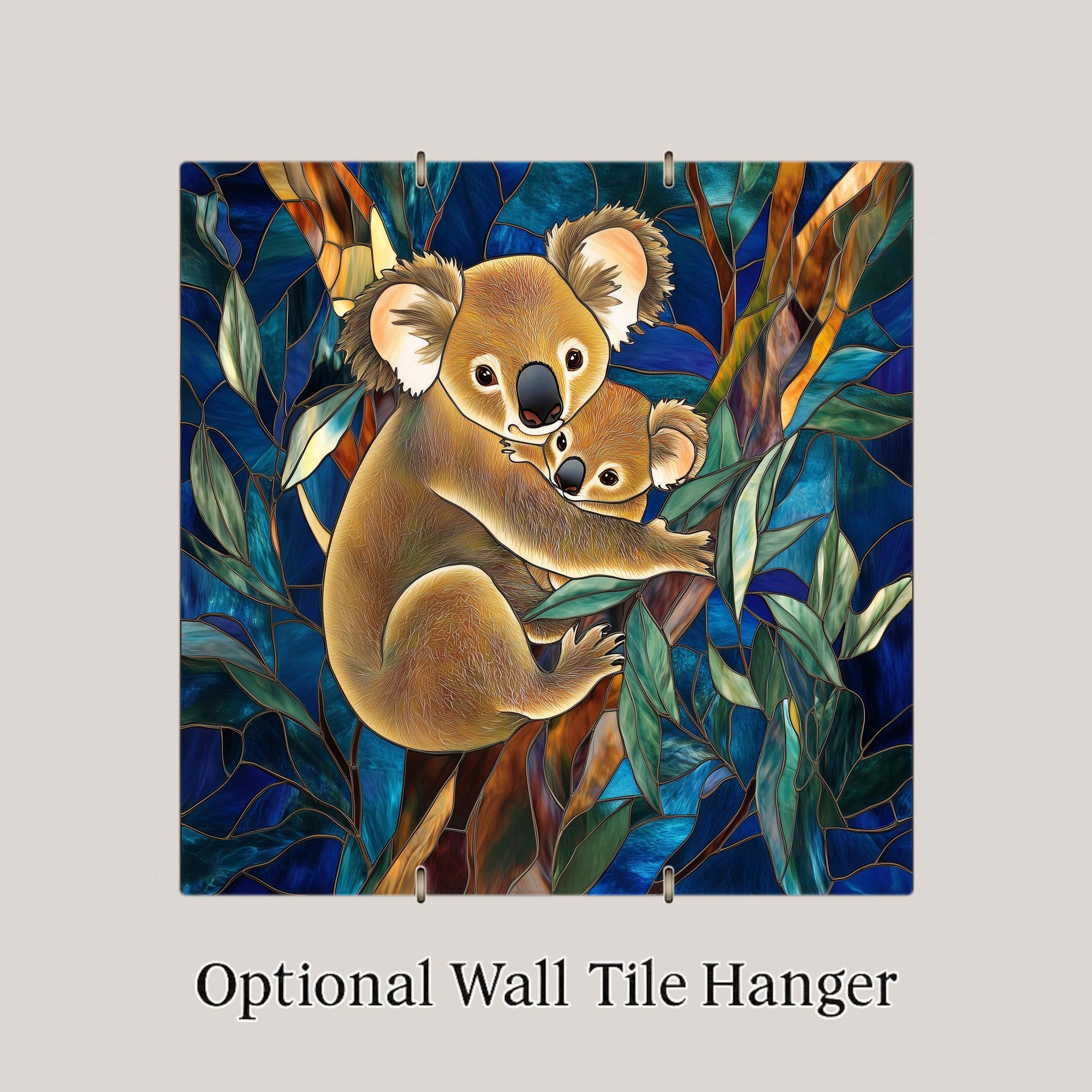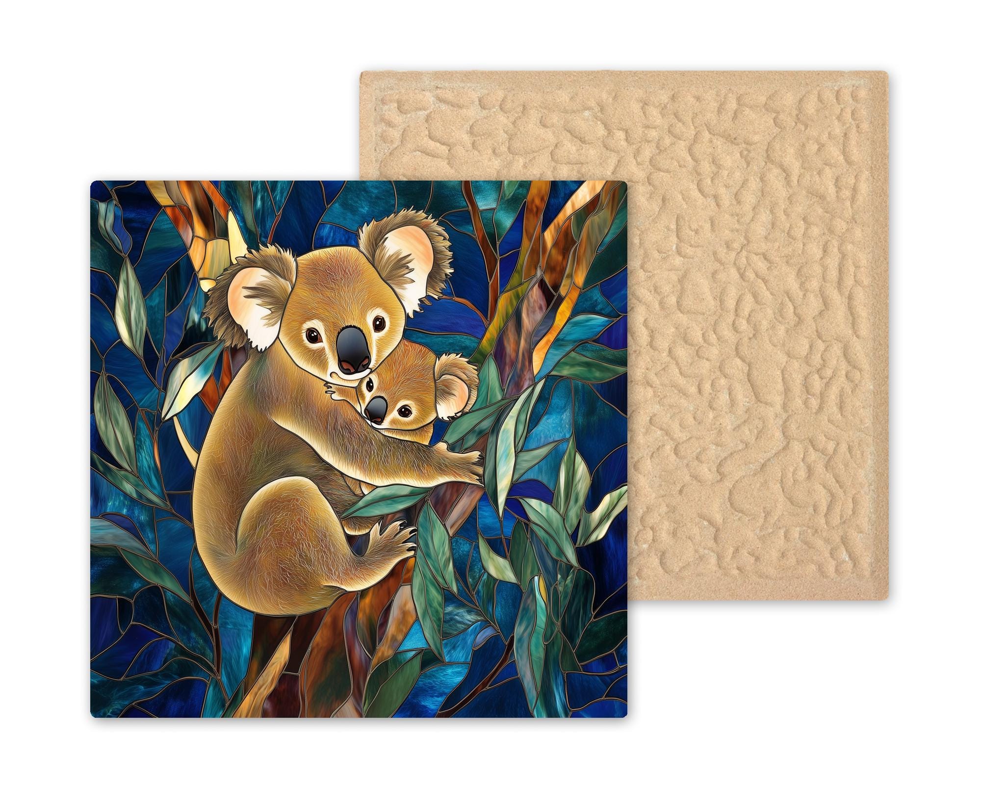 The buyer of this tile loves koalas with the specific devotion that koala people have — completely and without apology. They want something that captures the creature's gentle, sleepy warmth in genuine art rather than a novelty gift. The baby on the mother's back gives this tile an emotional depth that the existing koala listing doesn't have — this is the mother and baby version, the nursery gift version, the new mum gift version.