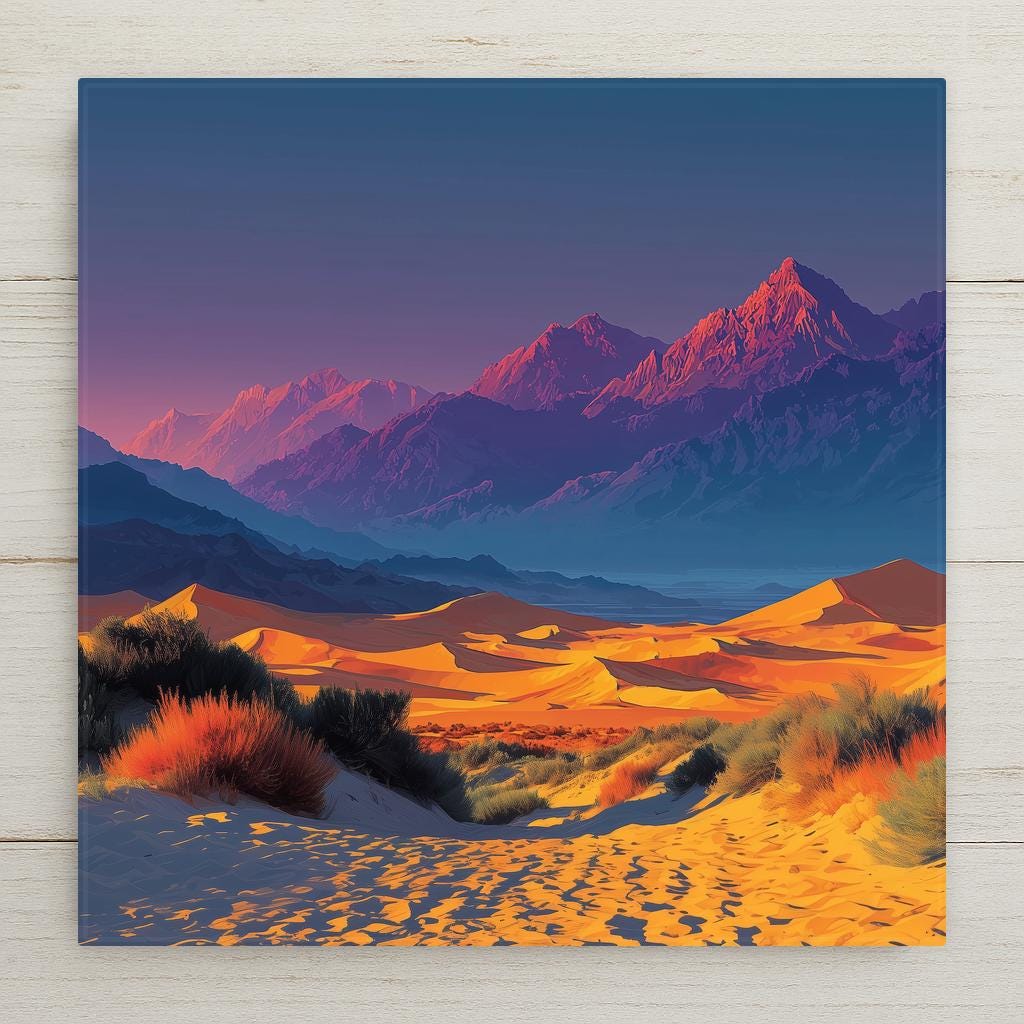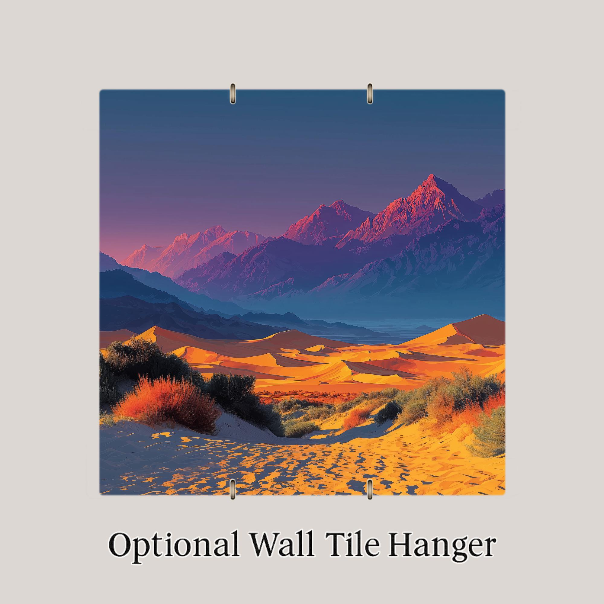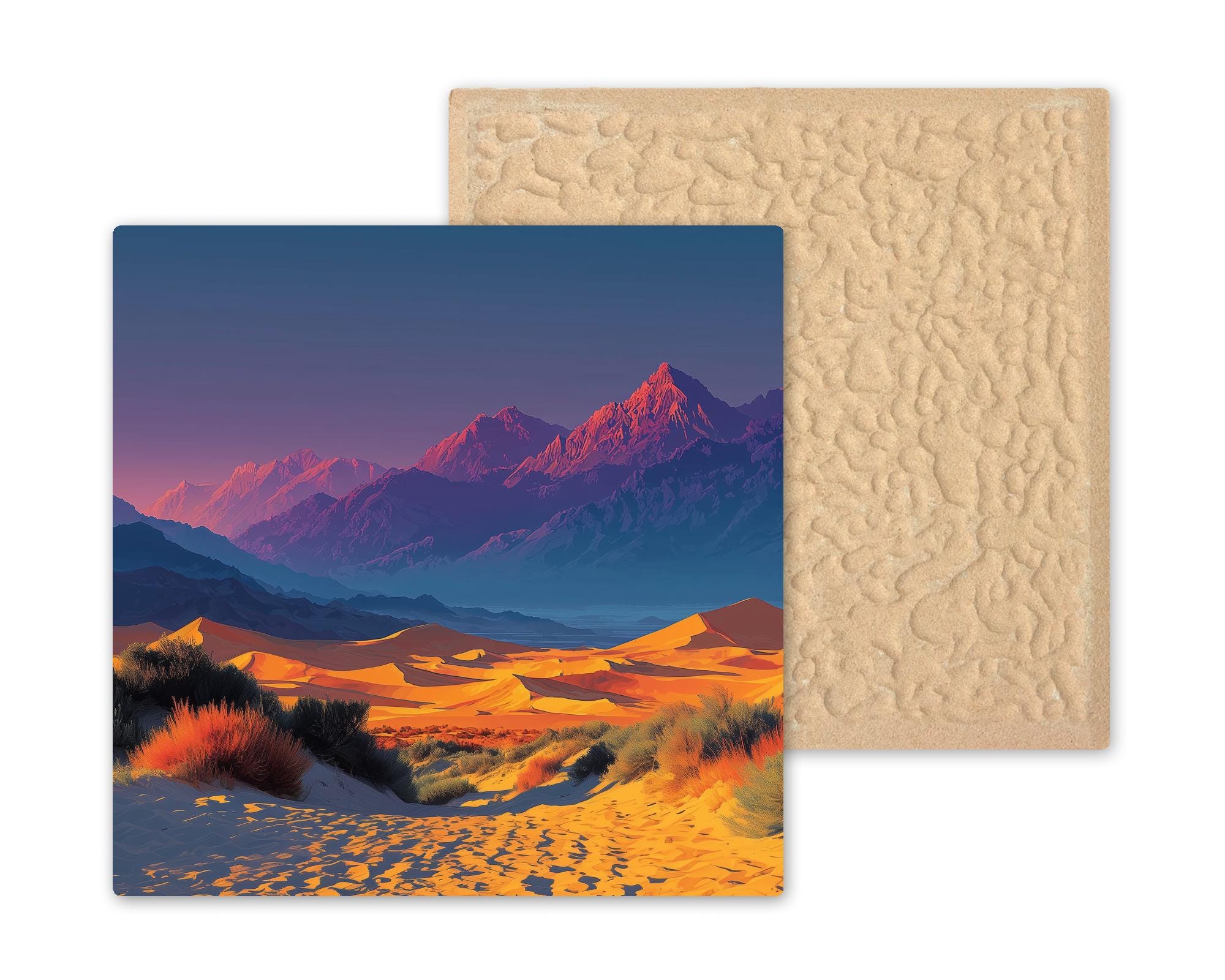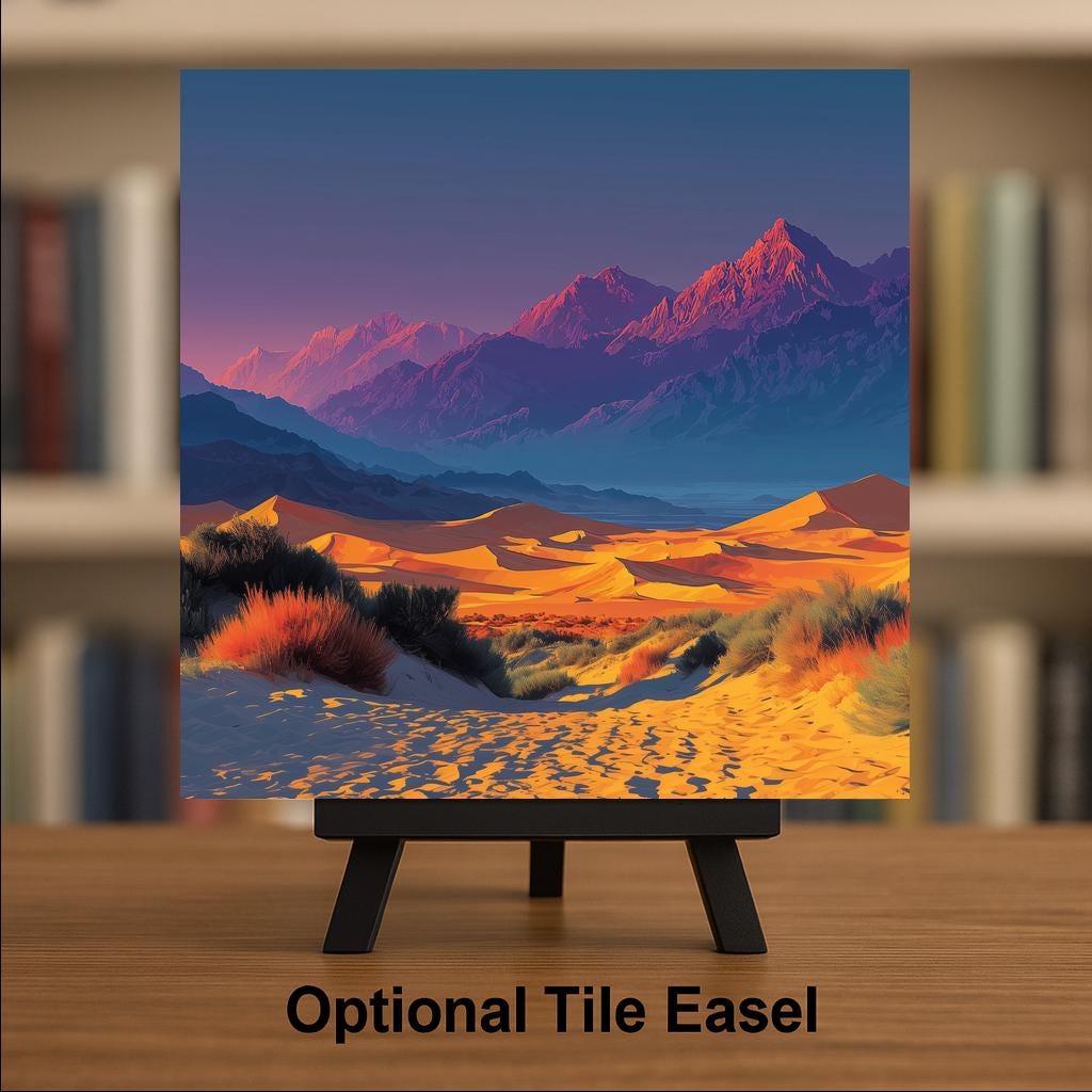 California has many extraordinary desert landscapes, but Death Valley stands alone — in scale, in extremity, in the particular quality of its early morning light when the dunes are cool and the shadows are long and the mountains behind are still blue. This tile is for the California desert lover, the Death Valley regular who goes every spring, and the Southwest collector who wants the most dramatic desert in the catalog. The warm amber and deep shadow palette renders with exceptional depth on ceramic.