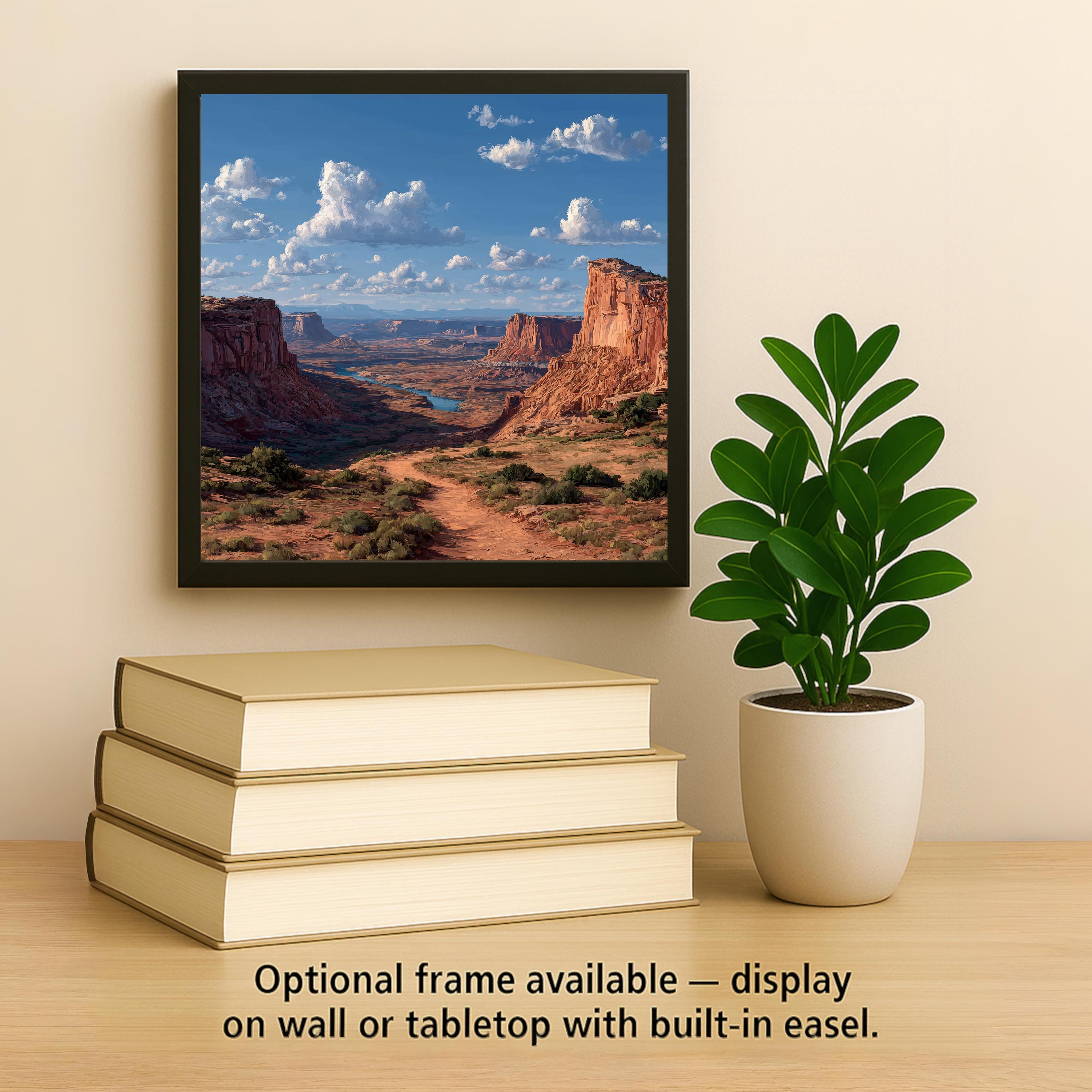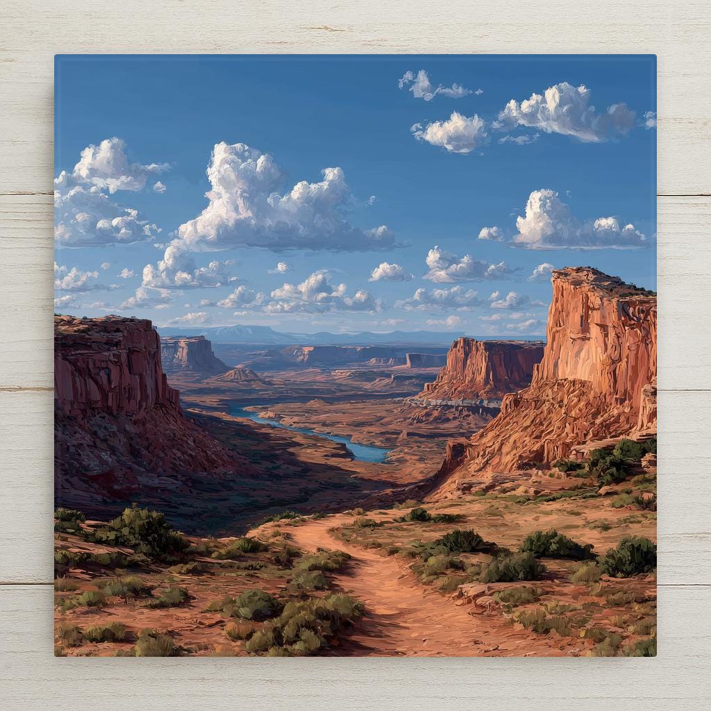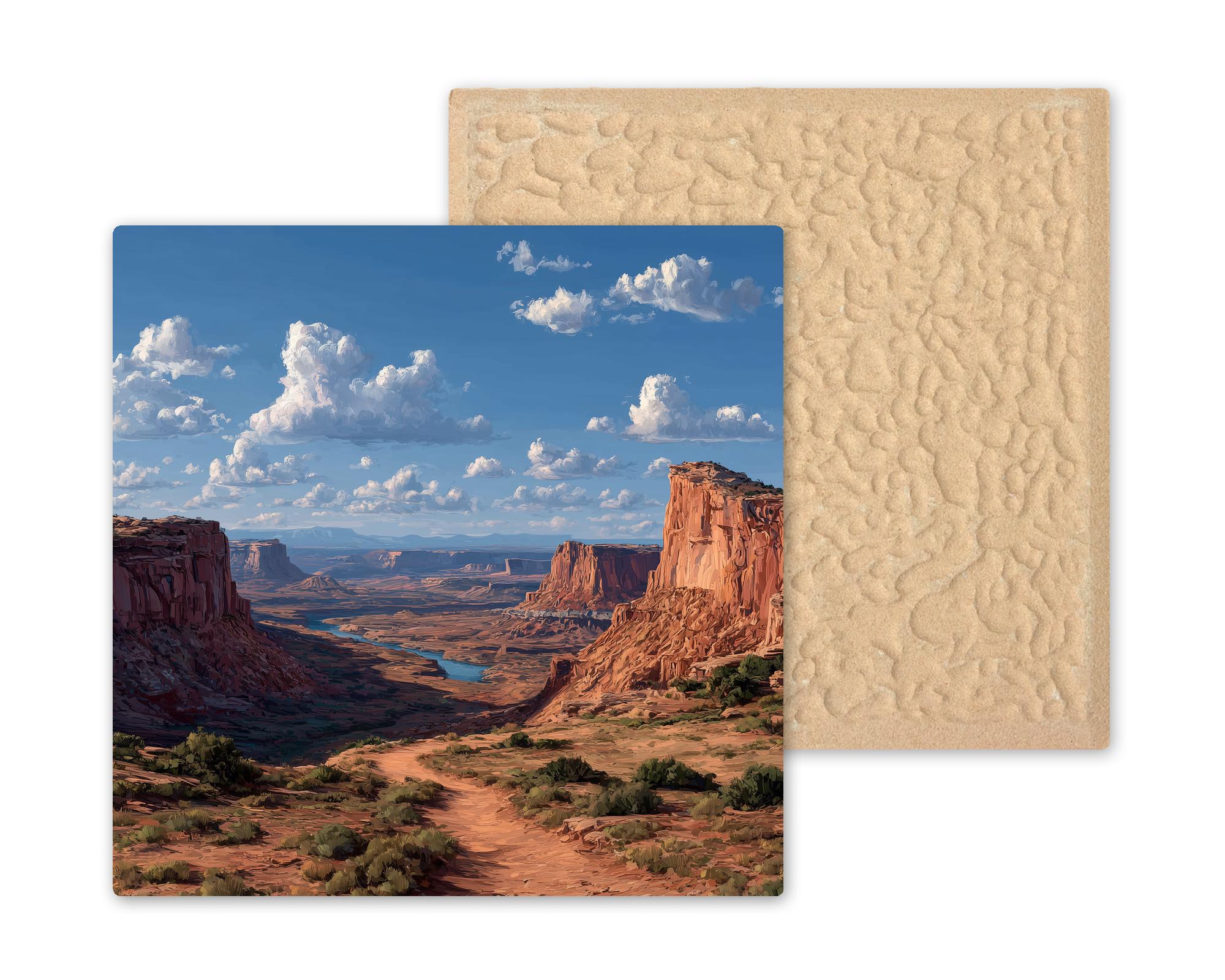 For Utah natives and canyon country lovers this is deep home territory — a landscape that demands to be lived with, not just visited. This tile pairs naturally with our Arches listing for the collector working through the Utah Five, and stands on its own for anyone who drove out to Island in the Sky and came home changed by what they saw. The rich red sandstone and deep canyon blues print with exceptional depth on ceramic — a piece of art that earns the silence it creates.