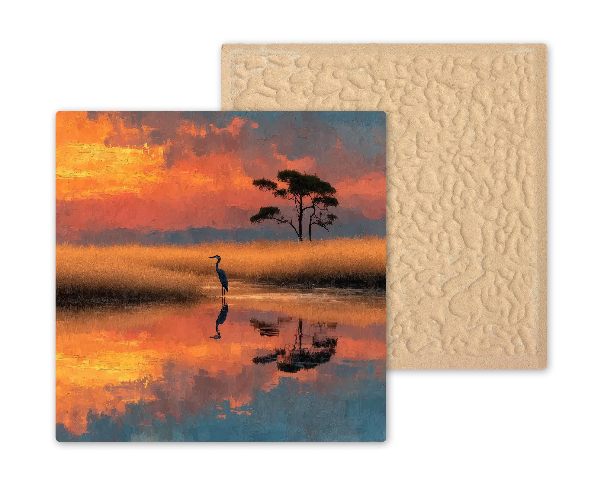 For Florida residents this is home in a very specific way — the Everglades are unlike any other Florida landscape, not beach, not theme park, not Keys, but something older and wilder and more patient. As a gift it reaches the birder who has paddled the backcountry, the Florida native who takes the 'Glades seriously, and the national park collector who wants the subtropical entry that most people skip. This tile also pairs naturally with our Great Blue Heron series for the heron collector who wants the bird in its most iconic habitat.