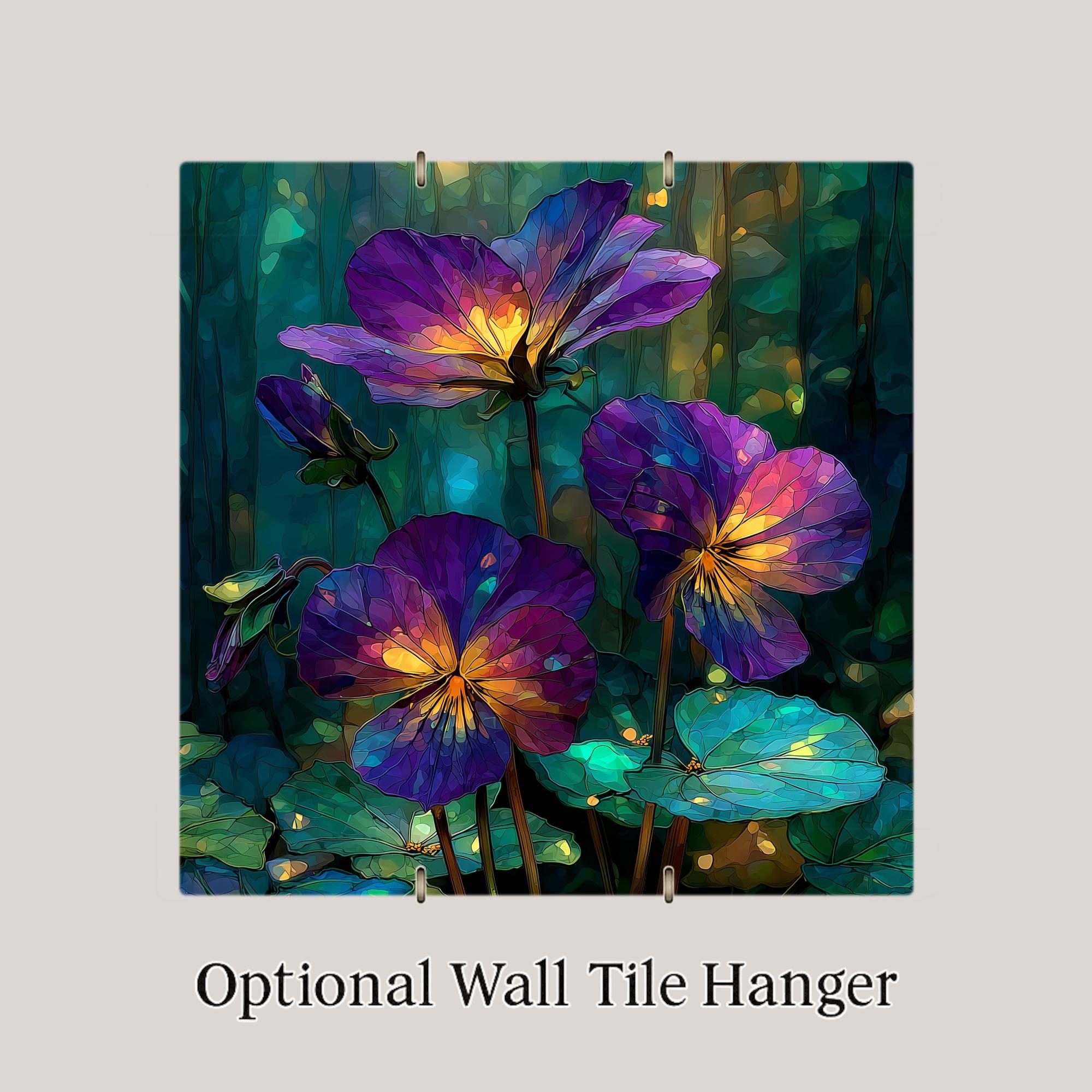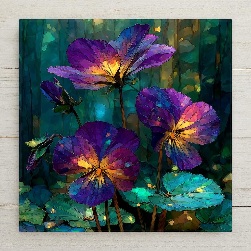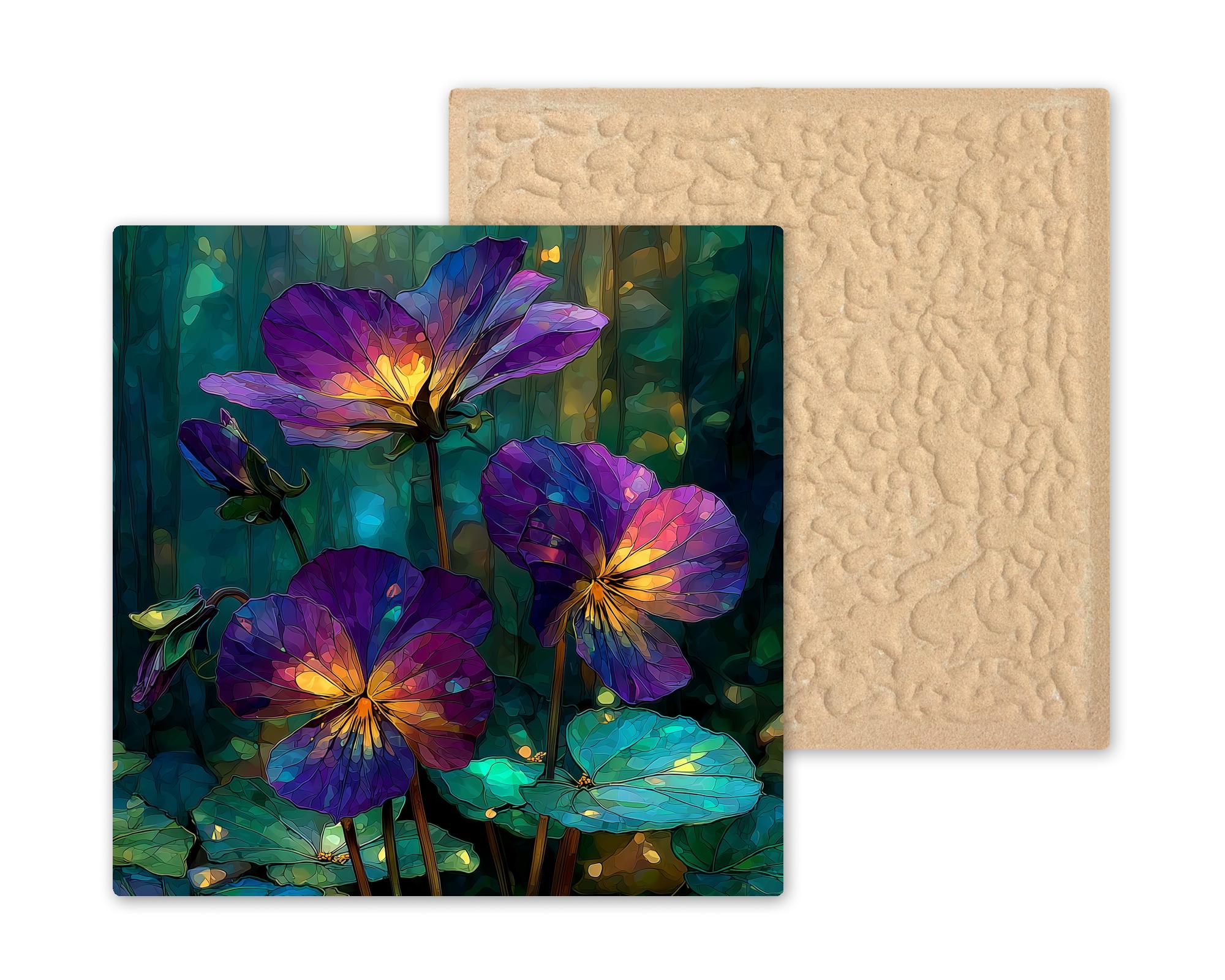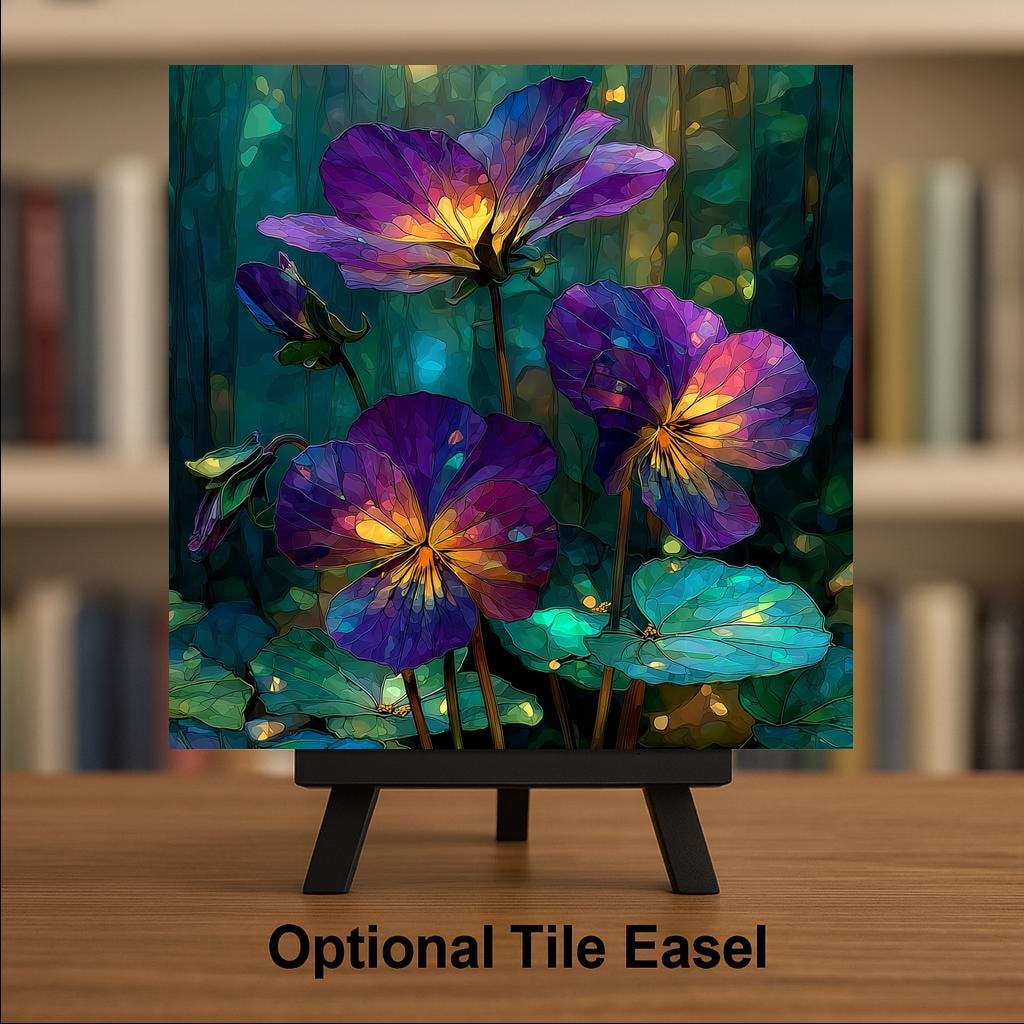 The birth month flower is one of the most reliably converting gift lanes in the tile catalog — it answers a specific question with a specific object. The February buyer knows exactly what they are looking for: a violet for the person born this month. This tile works for the February birthday, the Valentine's Day adjacent gift, and the person who simply loves violets. The stained glass treatment gives it permanence and presence that a pressed flower or a print cannot match.