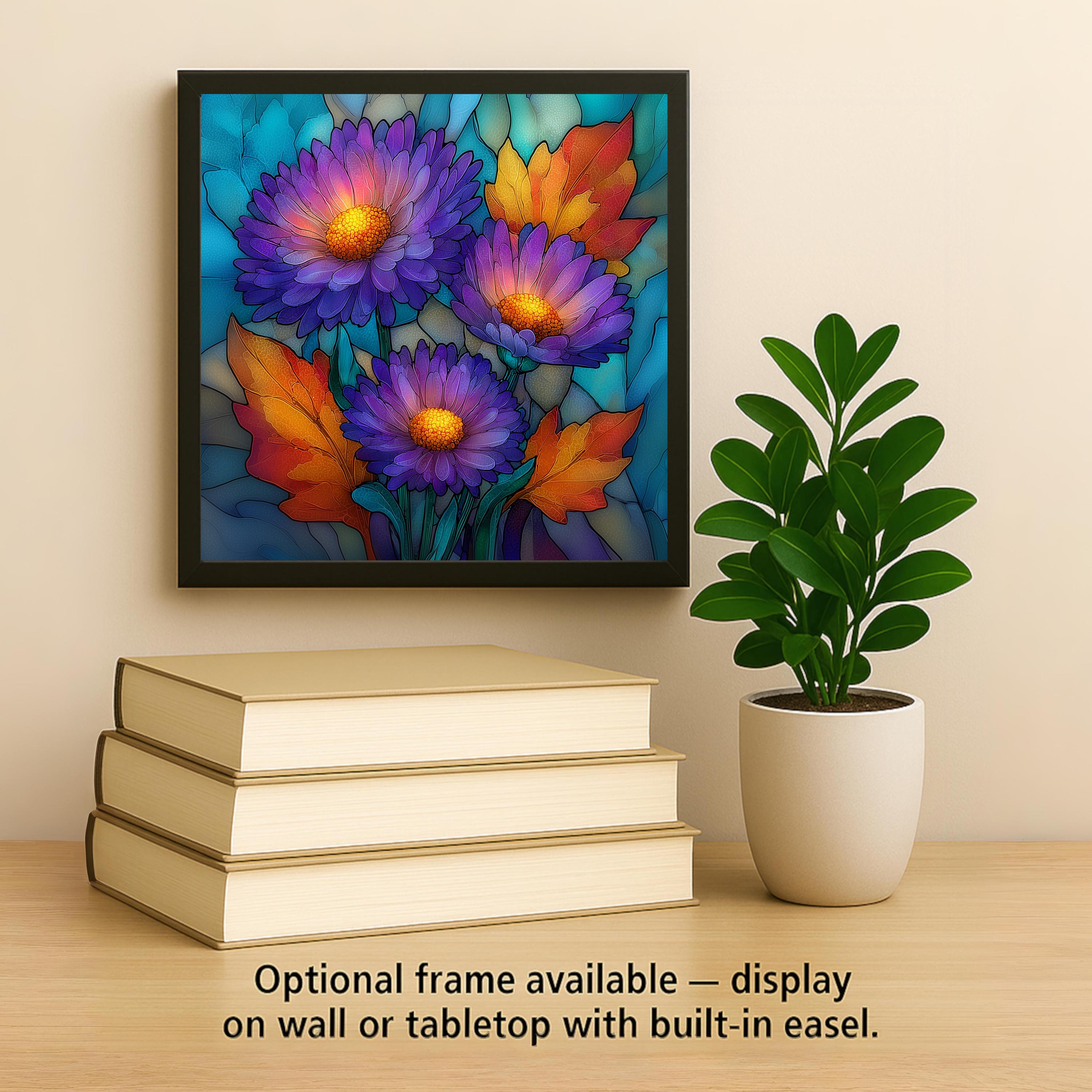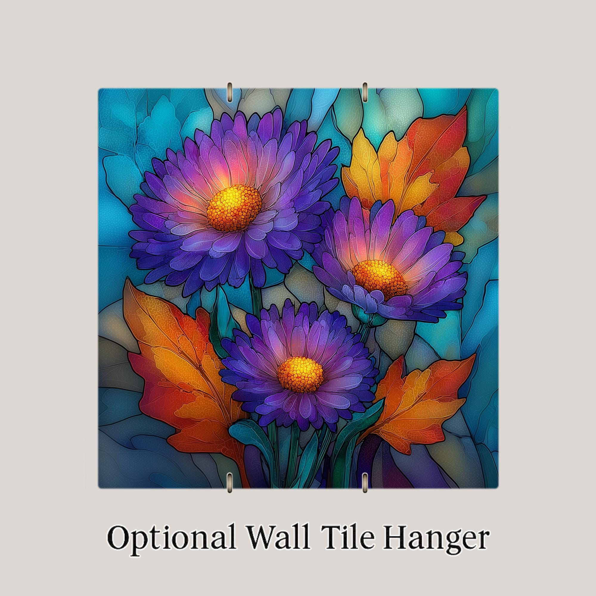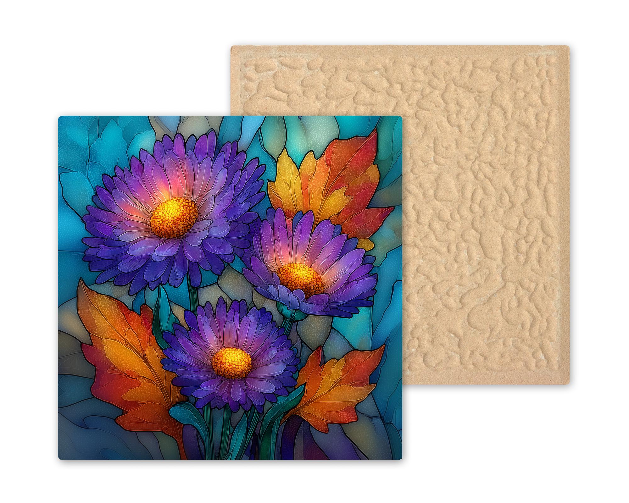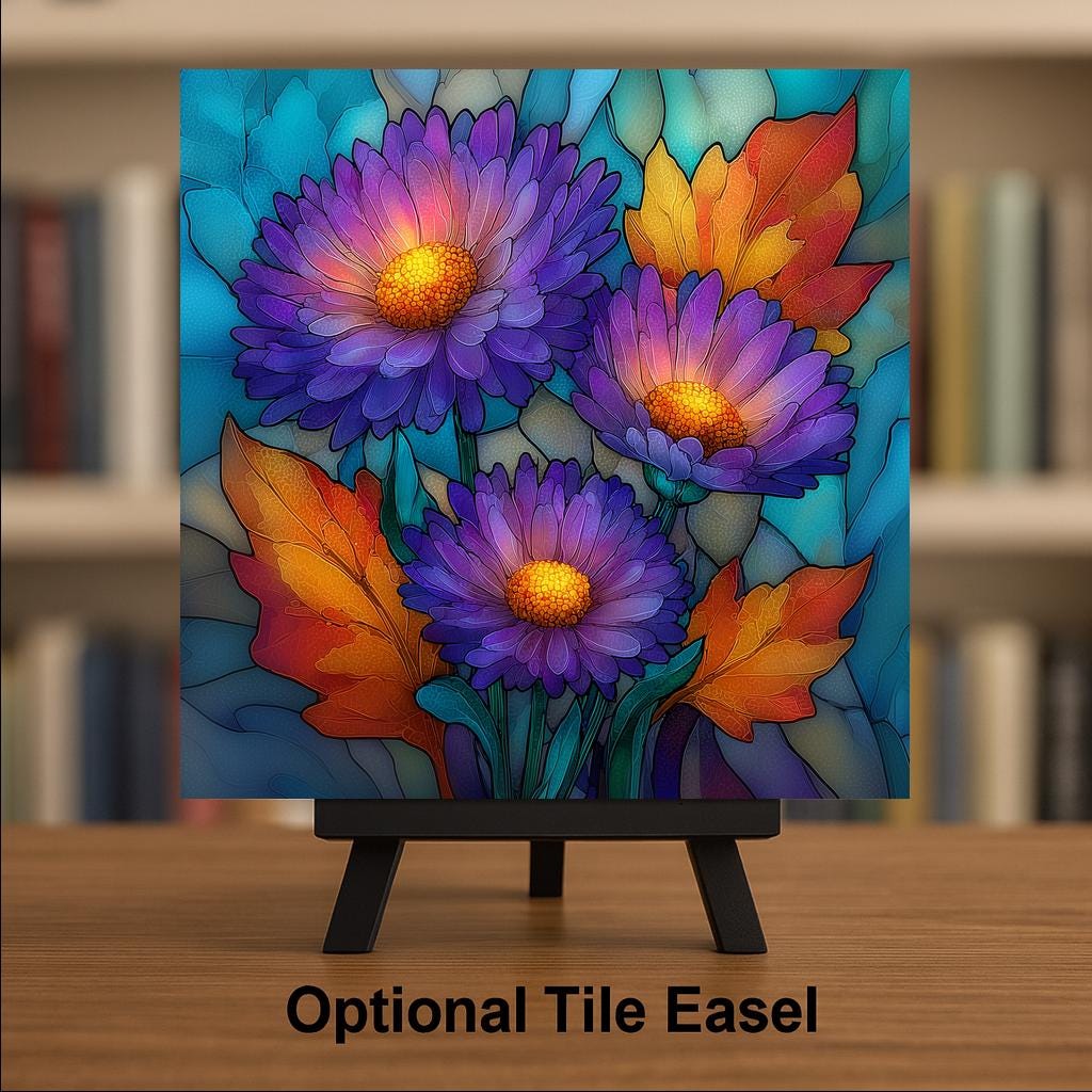 September birthdays fall at the hinge between summer and autumn, and the aster is their flower — the bloom that bridges the seasons, still holding summer color while the leaves begin to turn. This tile works for the September birthday, the early autumn gift, and anyone who loves the lavender and purple tones that appear in the garden as summer winds down. The SG treatment gives the aster a jeweled quality that elevates a modest wildflower into something extraordinary.