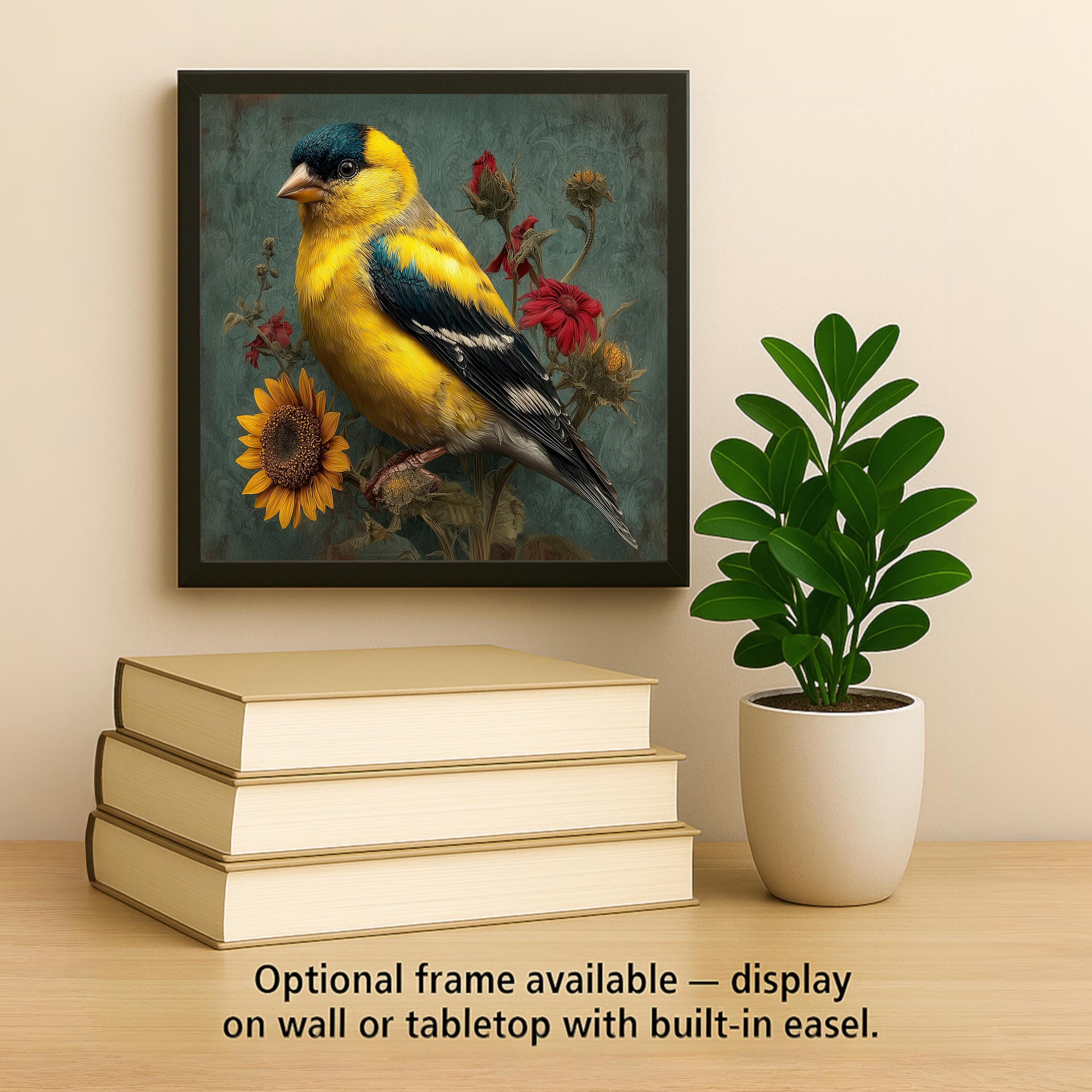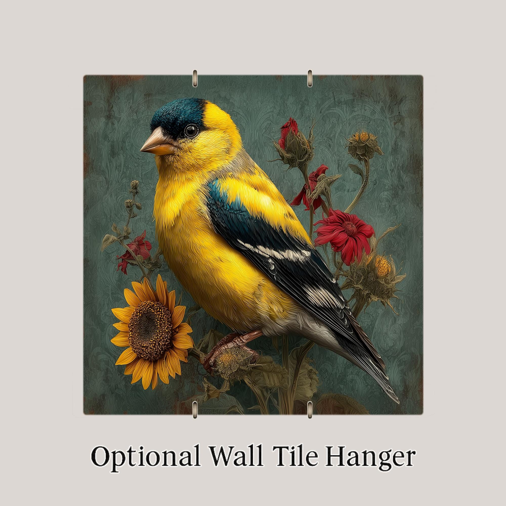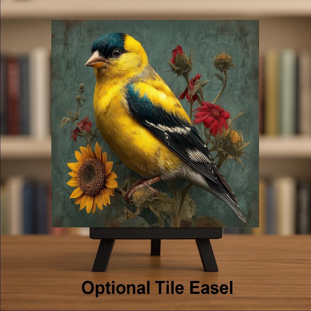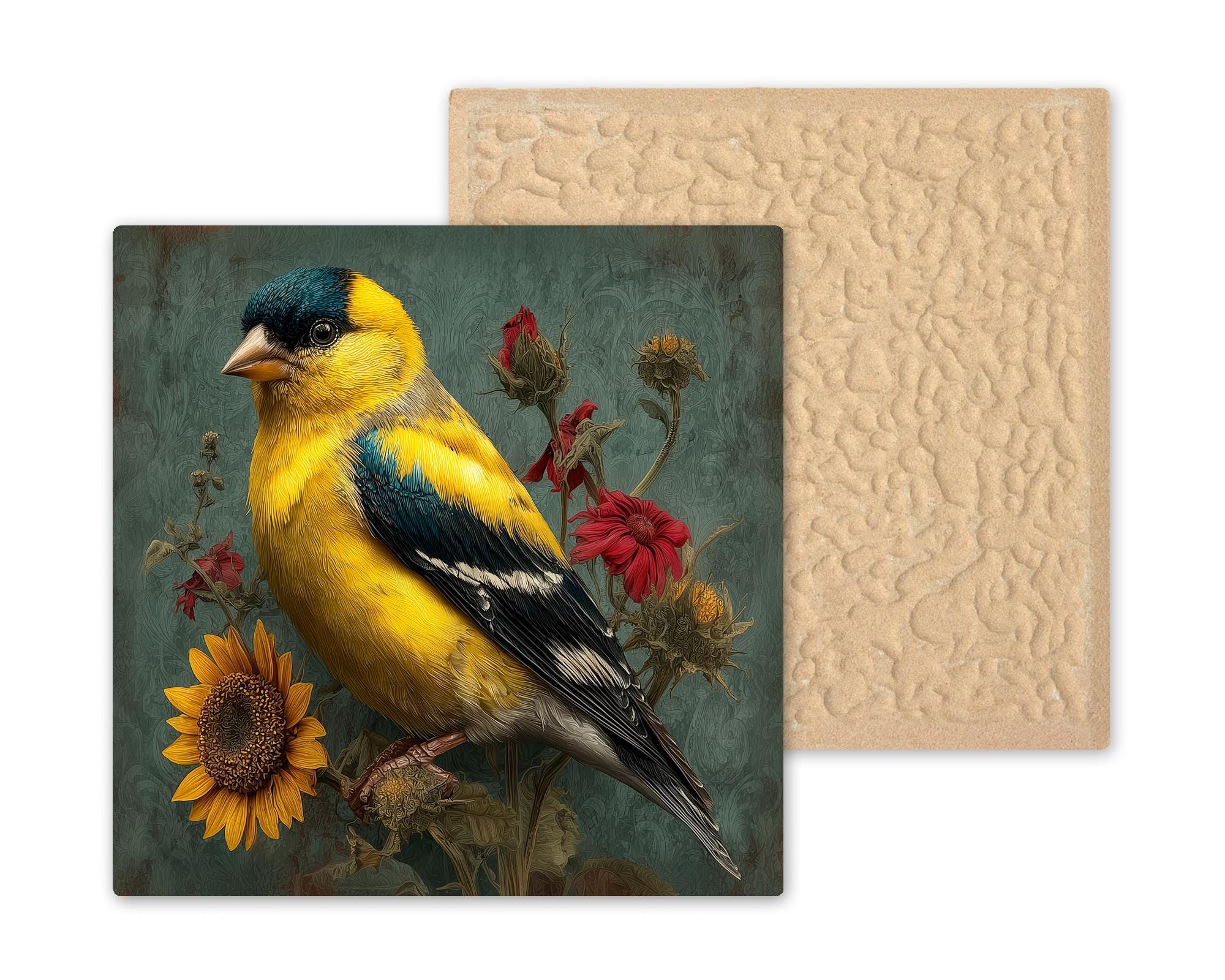 Iowa, New Jersey, and Washington are as different as three American states can be, but all three chose the goldfinch, and the people from those states tend to know it. This tile works for the state identity buyer from any of those three states, the birdwatcher who puts out nyjer seed specifically for goldfinches, and the person who associates the goldfinch's bright yellow with summer at its most saturated.