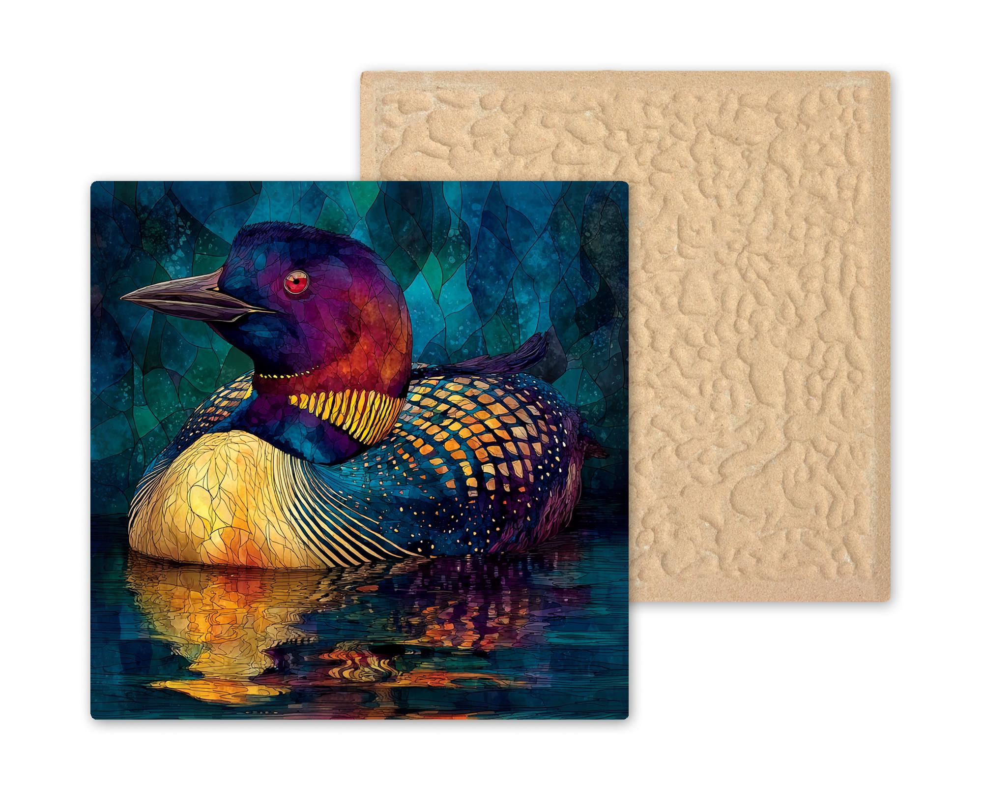 Minnesota identity runs through the loon in a way that few state birds achieve — the call is the sound of every lake cabin summer, the image is on the state quarter, the bird is in the name of countless resorts, boats, and hockey teams. This tile works for the Minnesotan who needs their state bird on their wall, the lake cabin owner who wants something that captures what the North Shore feels like, and the birdwatcher who has heard that call echo across a still lake at dusk and never forgotten it.